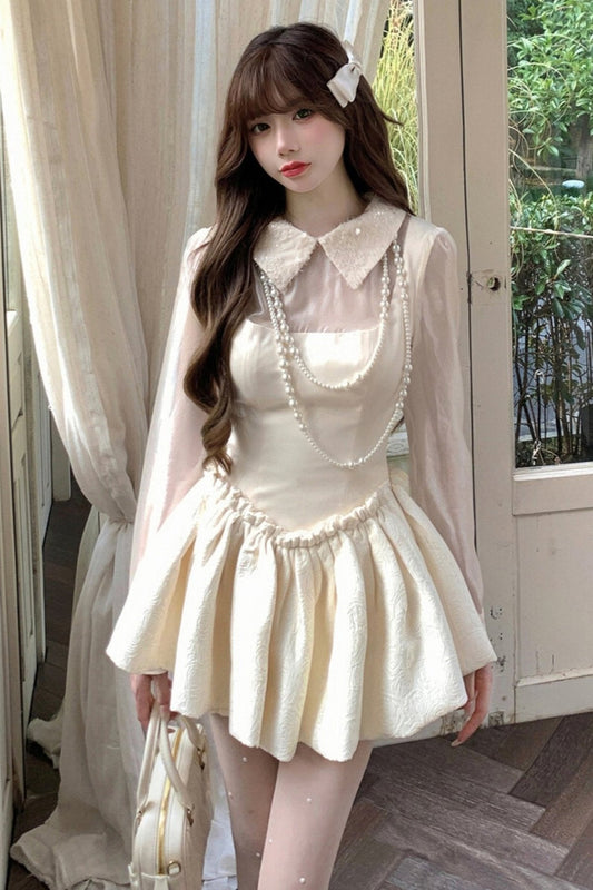 ベルベットニューウエストパフィードレス+ウエストチェーン