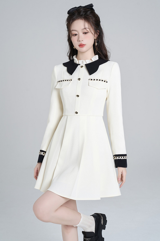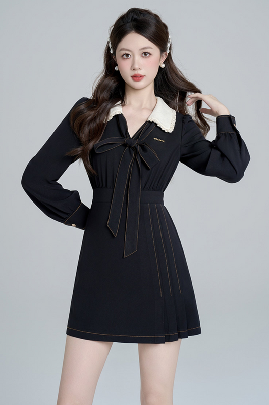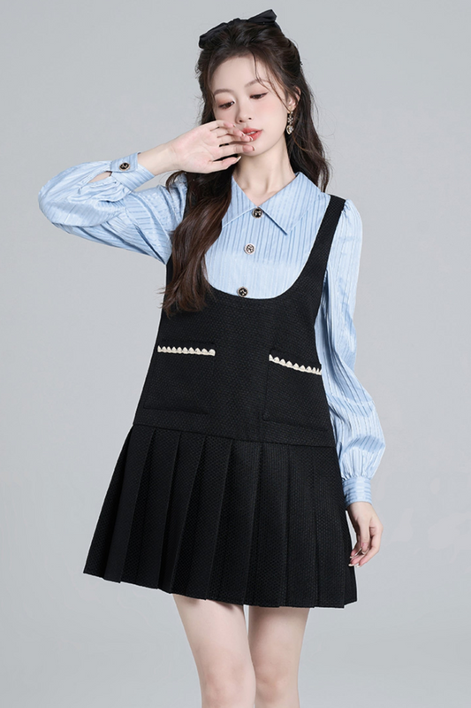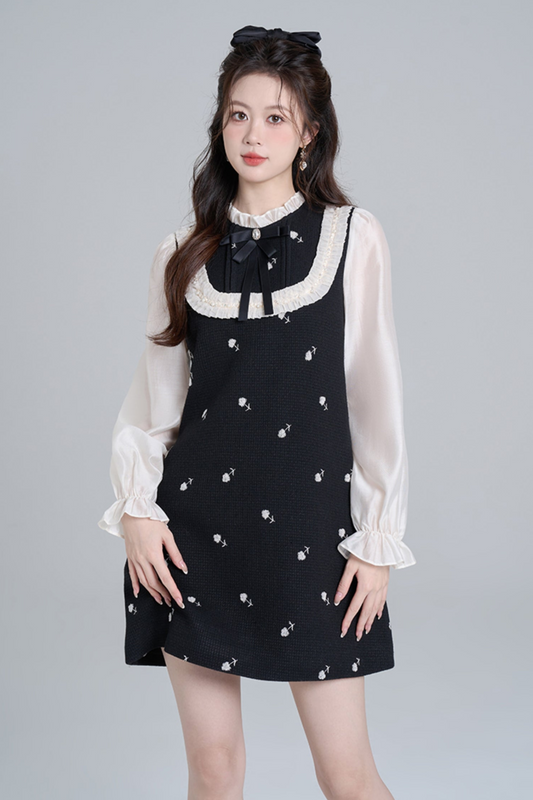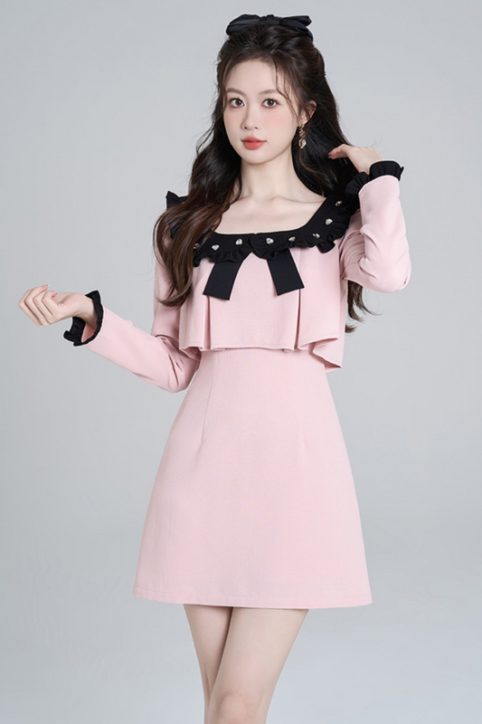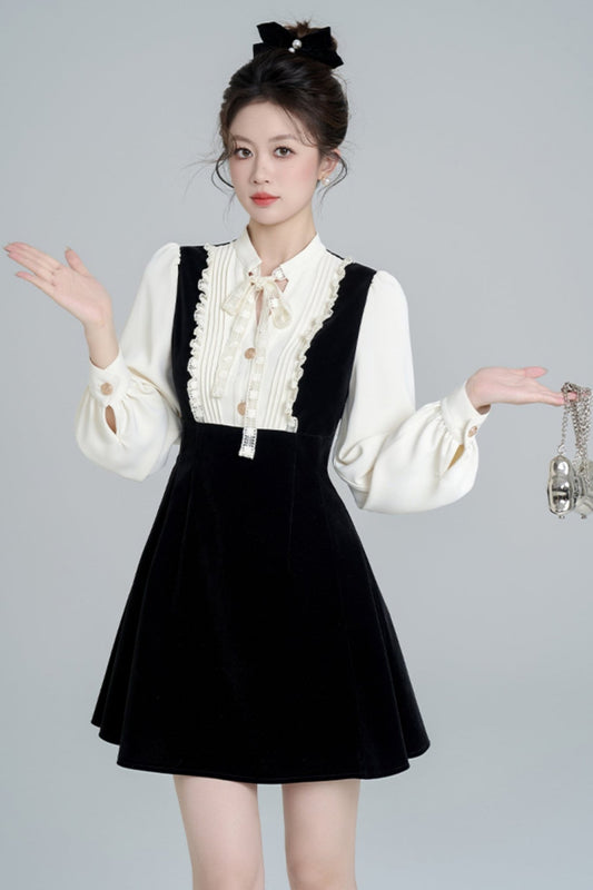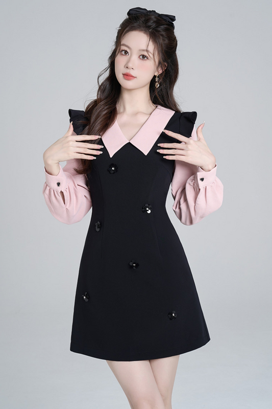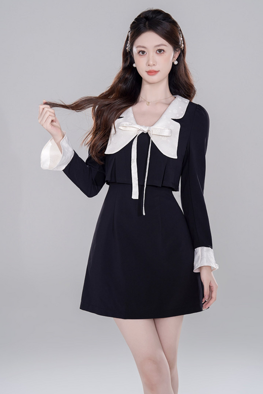 ブラックスタンドカラーフェイクツーピースドールドレス