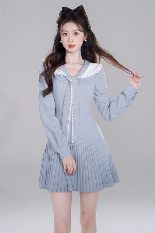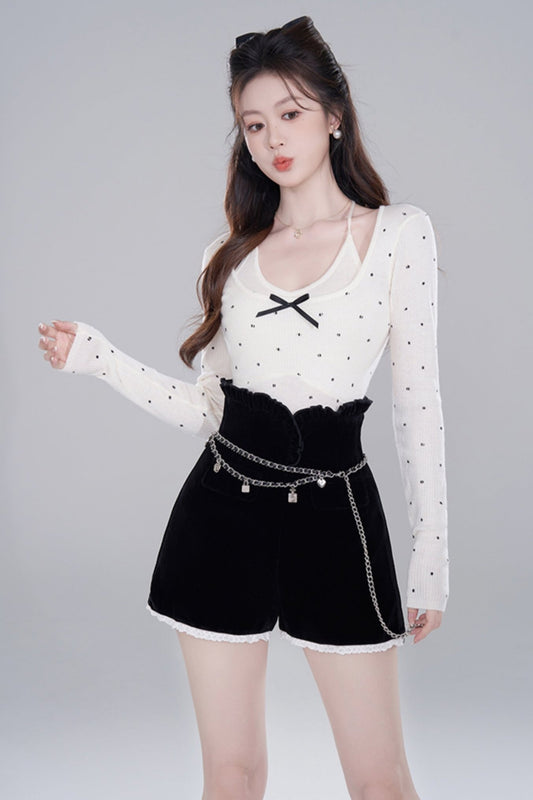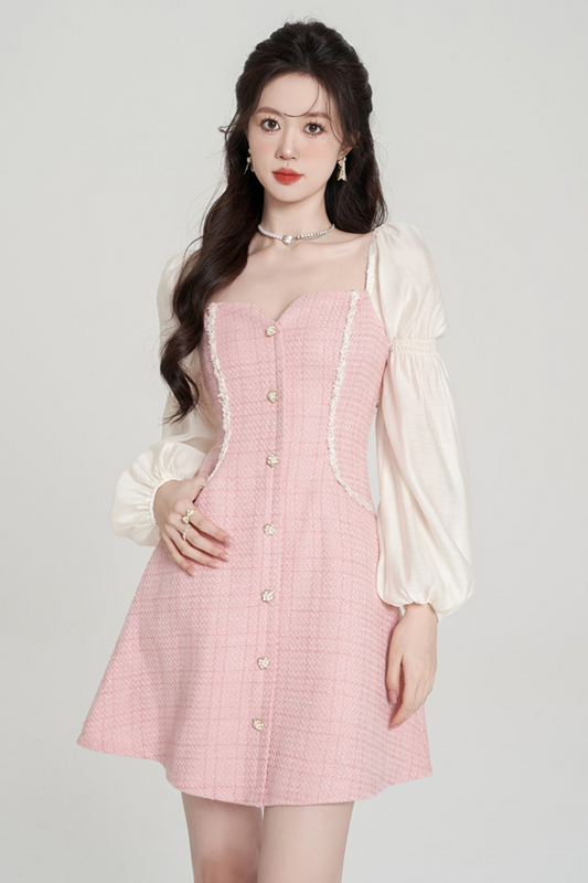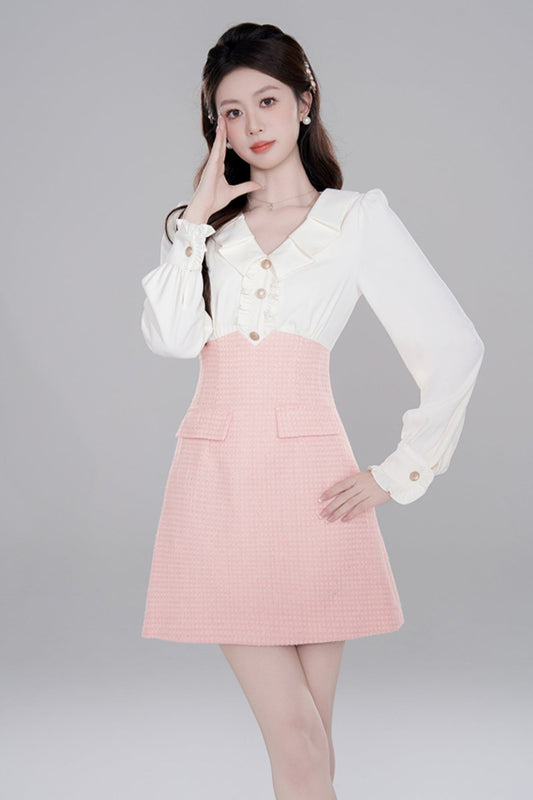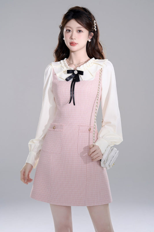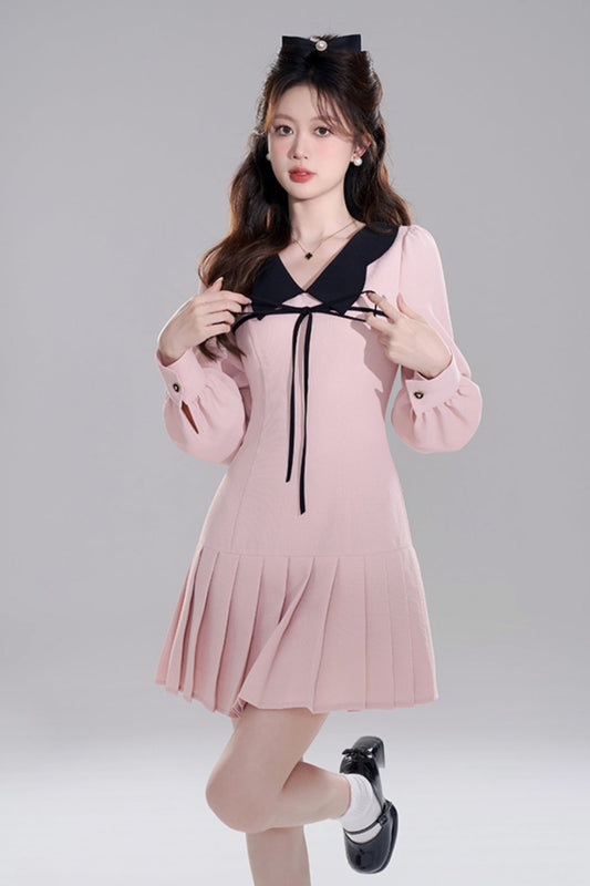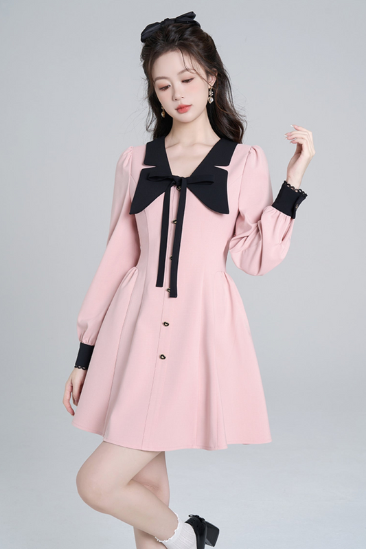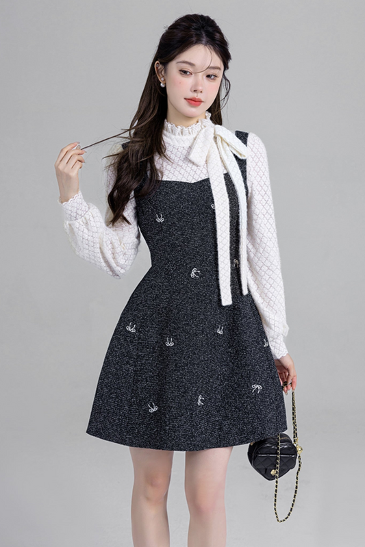 ブラックスタンドカラーフェイクツーピースドールドレス