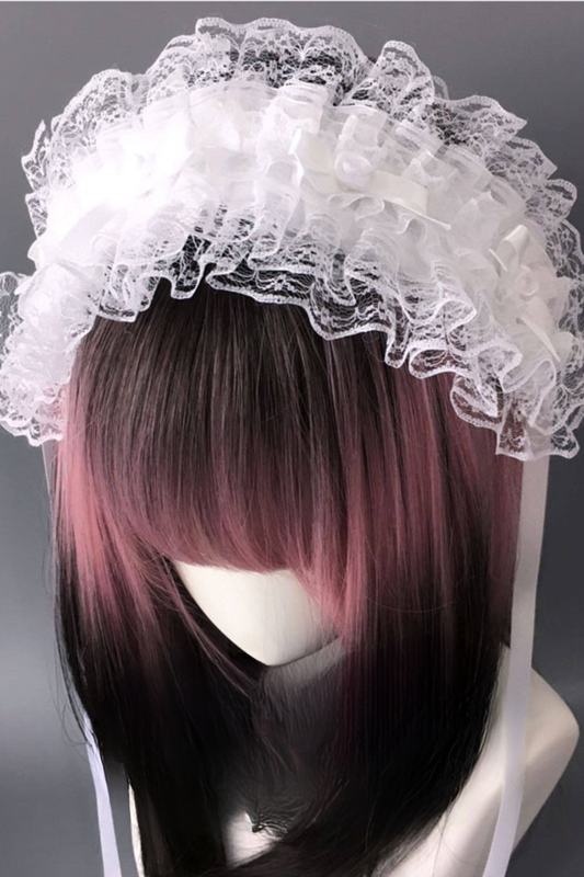 ダークブラックローズレースヘッドバンド+ヘアーブローチ