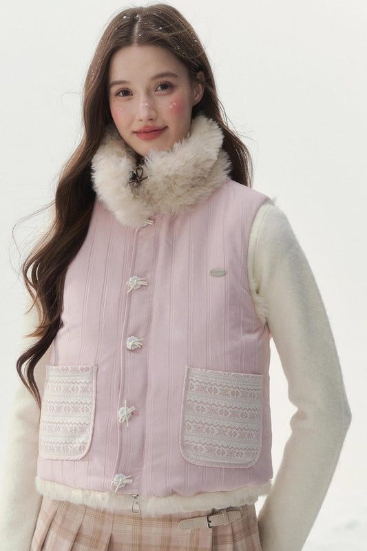 チェックドットファーリバーシブルベスト