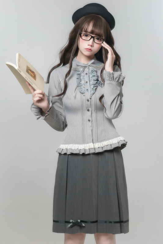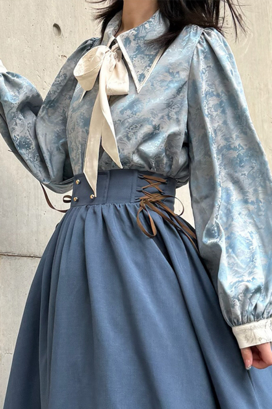 コントラストカラーレトロロリータブラウス+ネクタイ