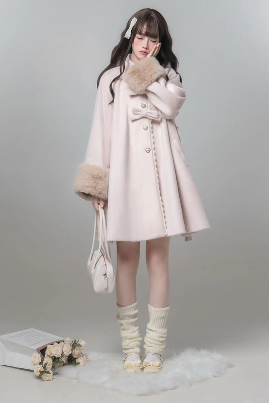 スイートガーリーリボンフレアコート+ファーカラー+シャツ+スカート+ベレー帽