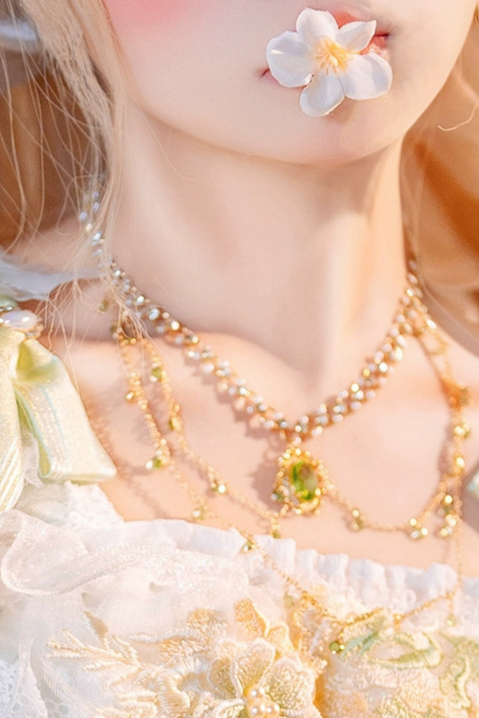 スイートフラワーゴージャスティーパーティーロリータアクセサリーハット+ベール+ネックレス+グローブ+セプター