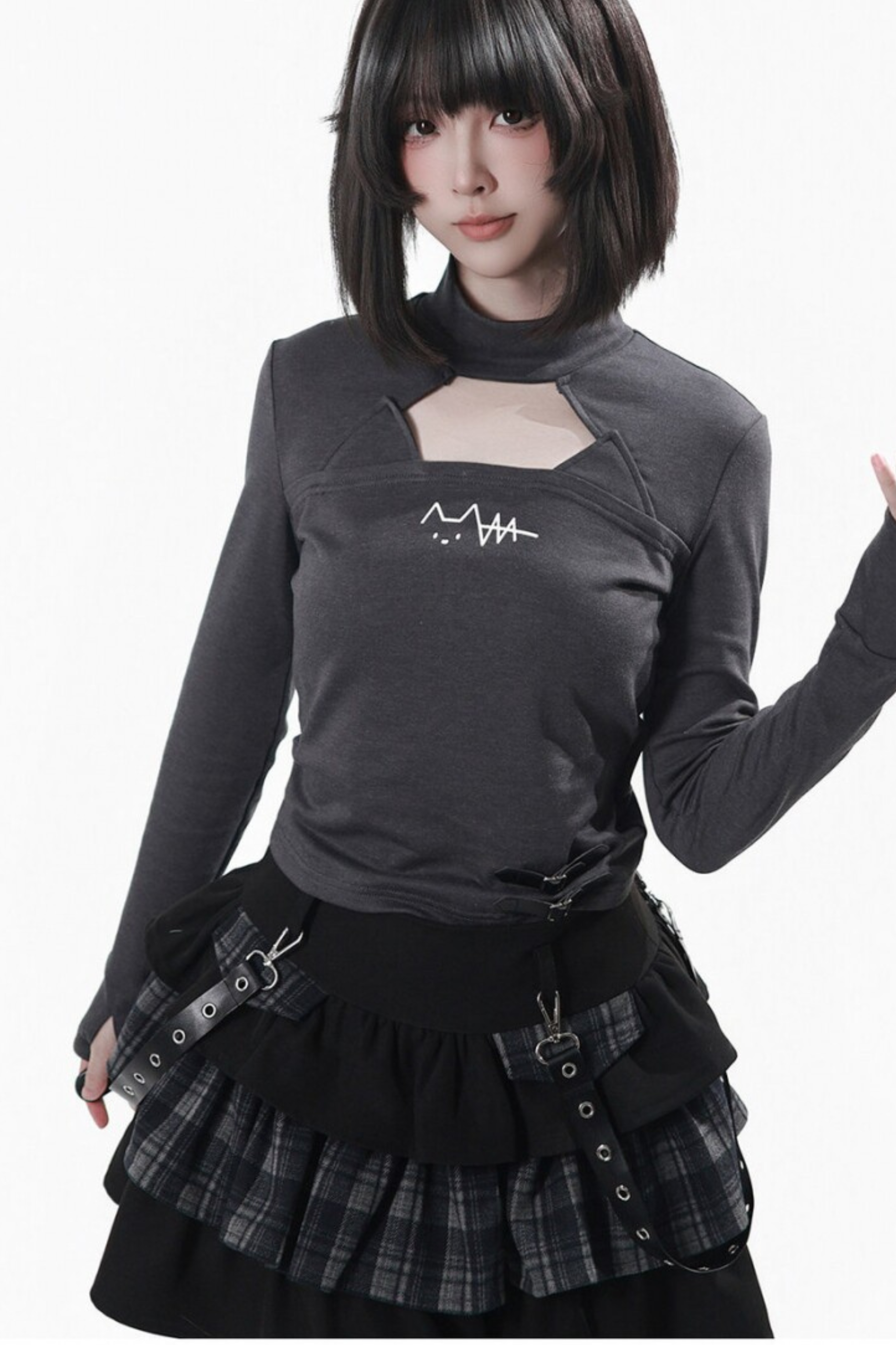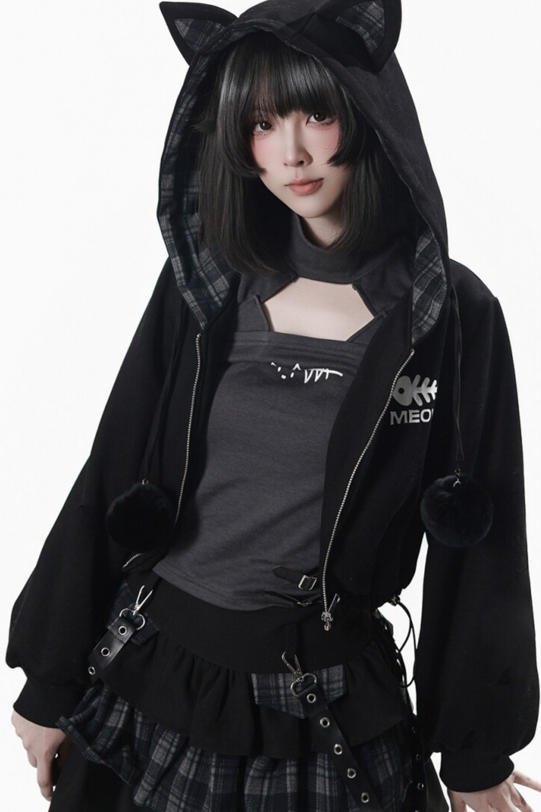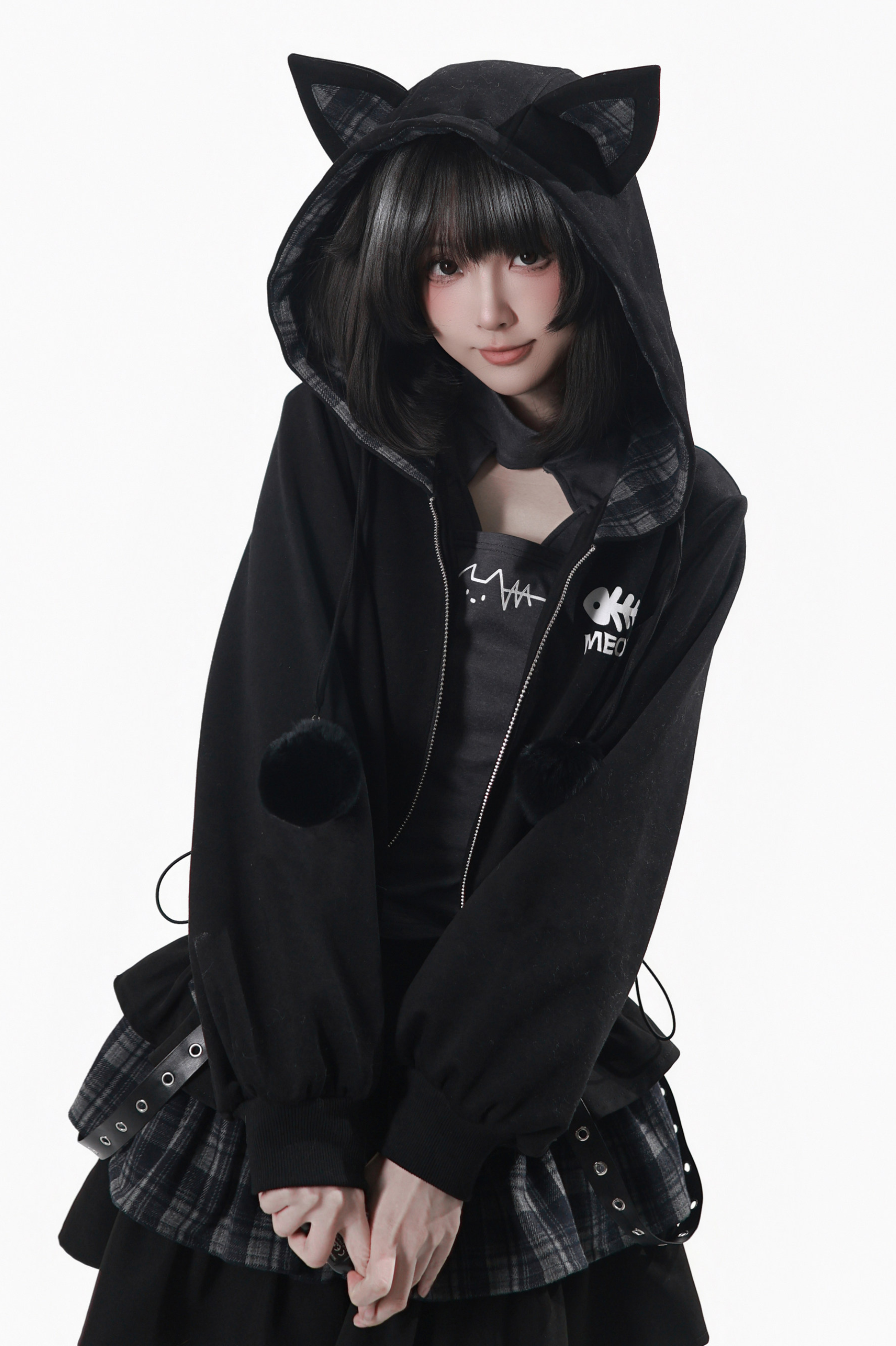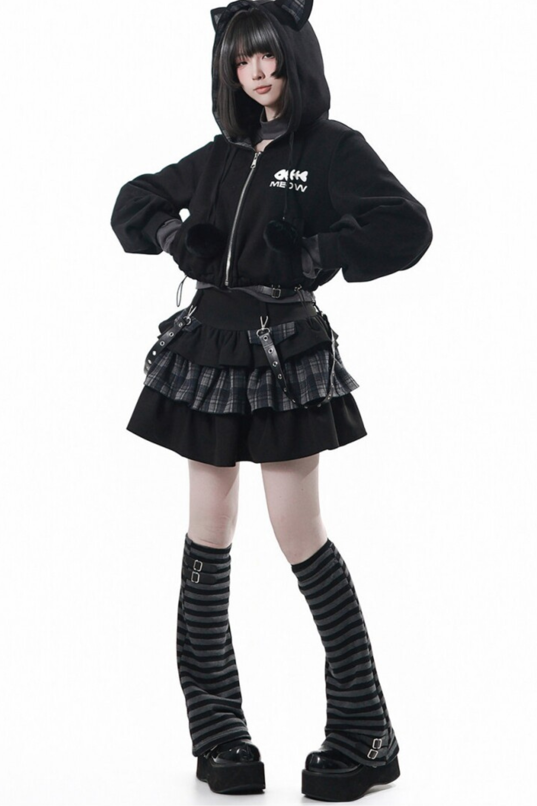 貓耳外套+蛋糕裙+上衣+條紋腿套