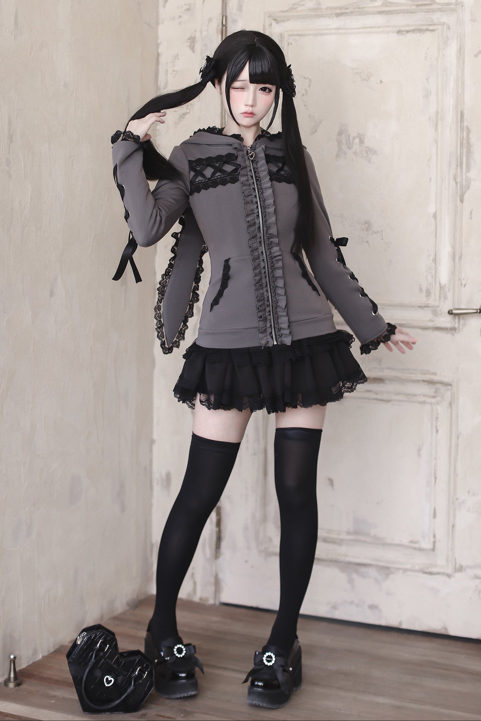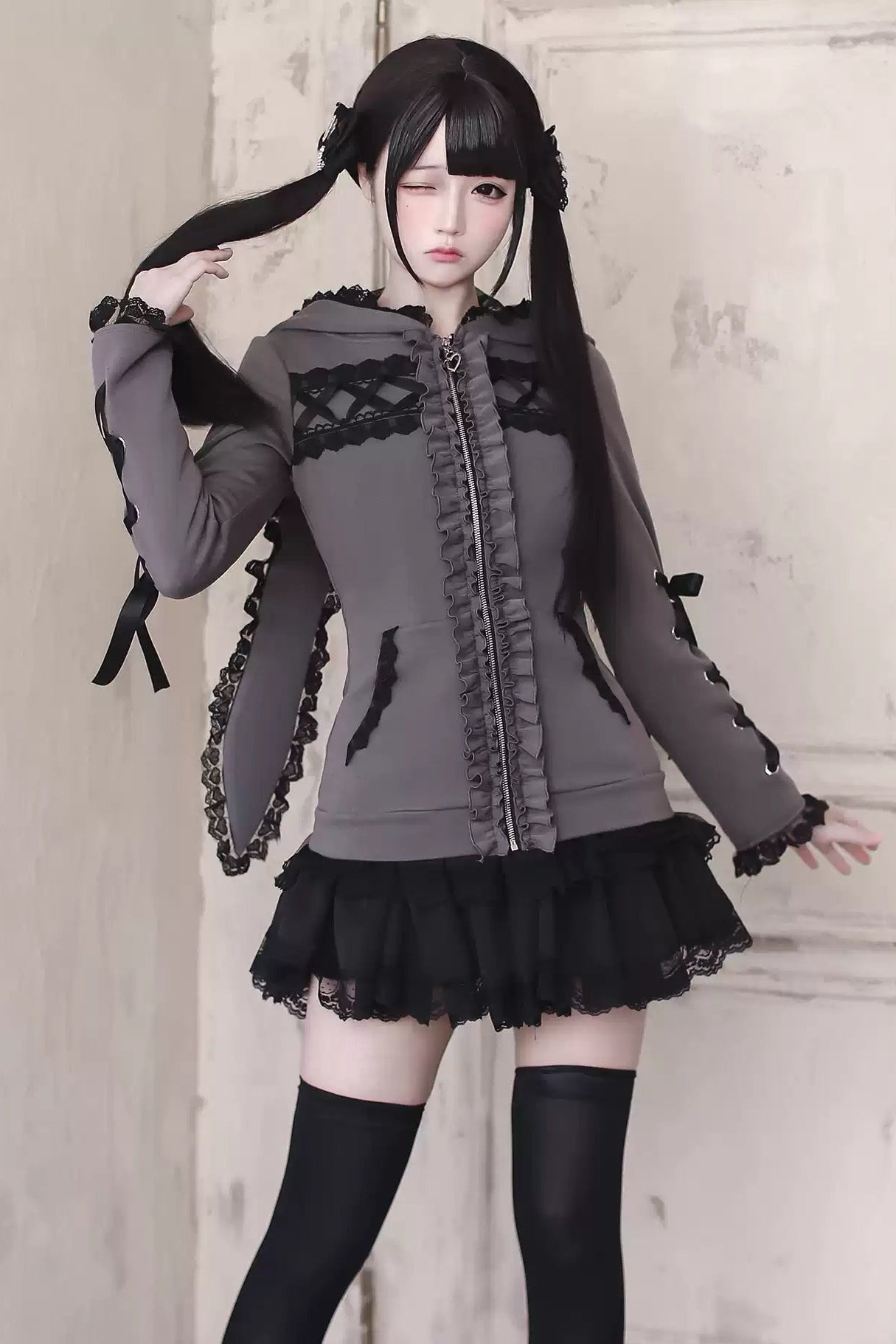 ❤︎【1月6日予約締切】うさ耳&猫耳フーディーフリルジップジャケット❤︎ ⚠️人気商品のためお届けに2-3ヶ月ほどかかってしまう場合がございます