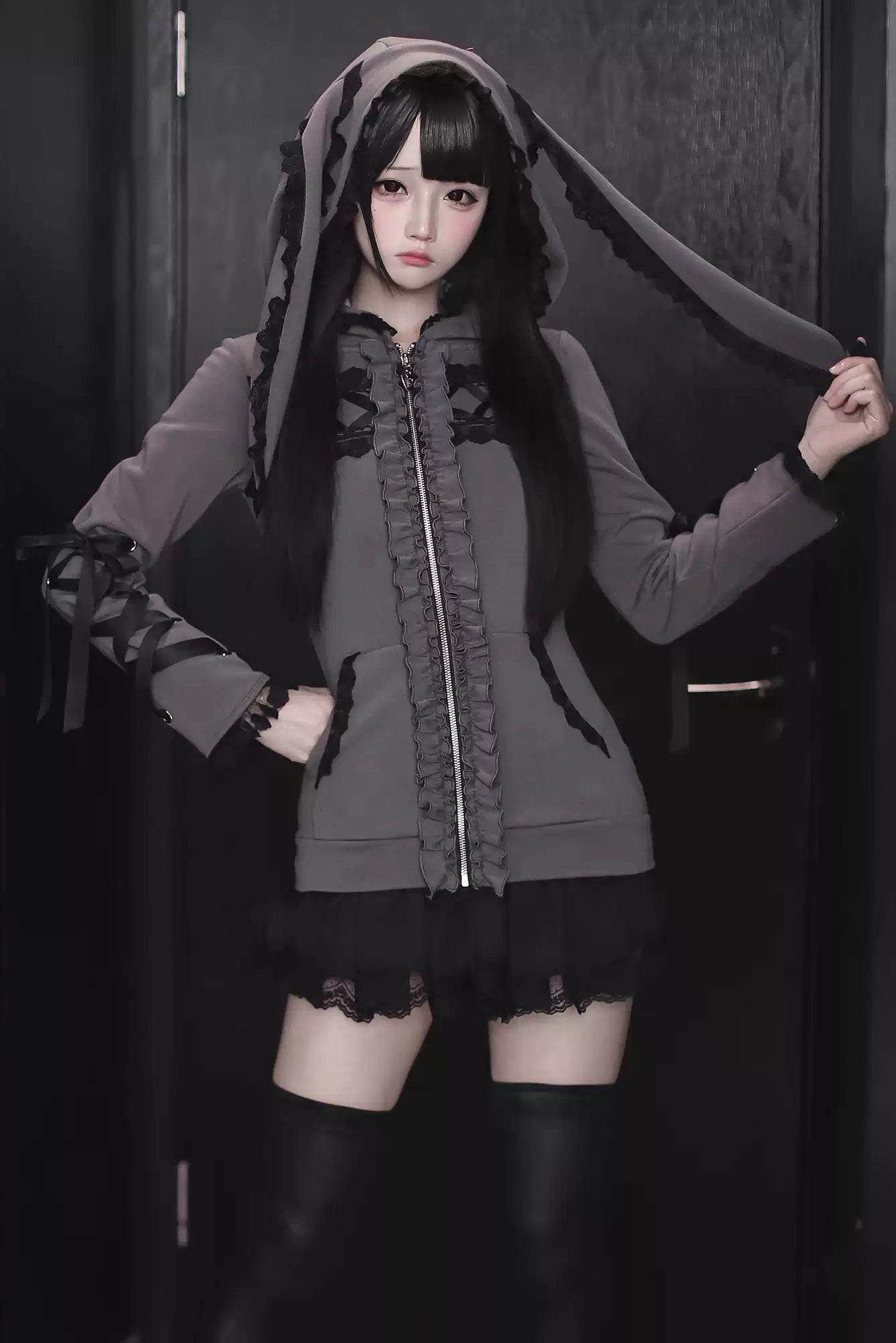 【1月6日予約締切】うさ耳&猫耳フーディーフリルジップジャケット