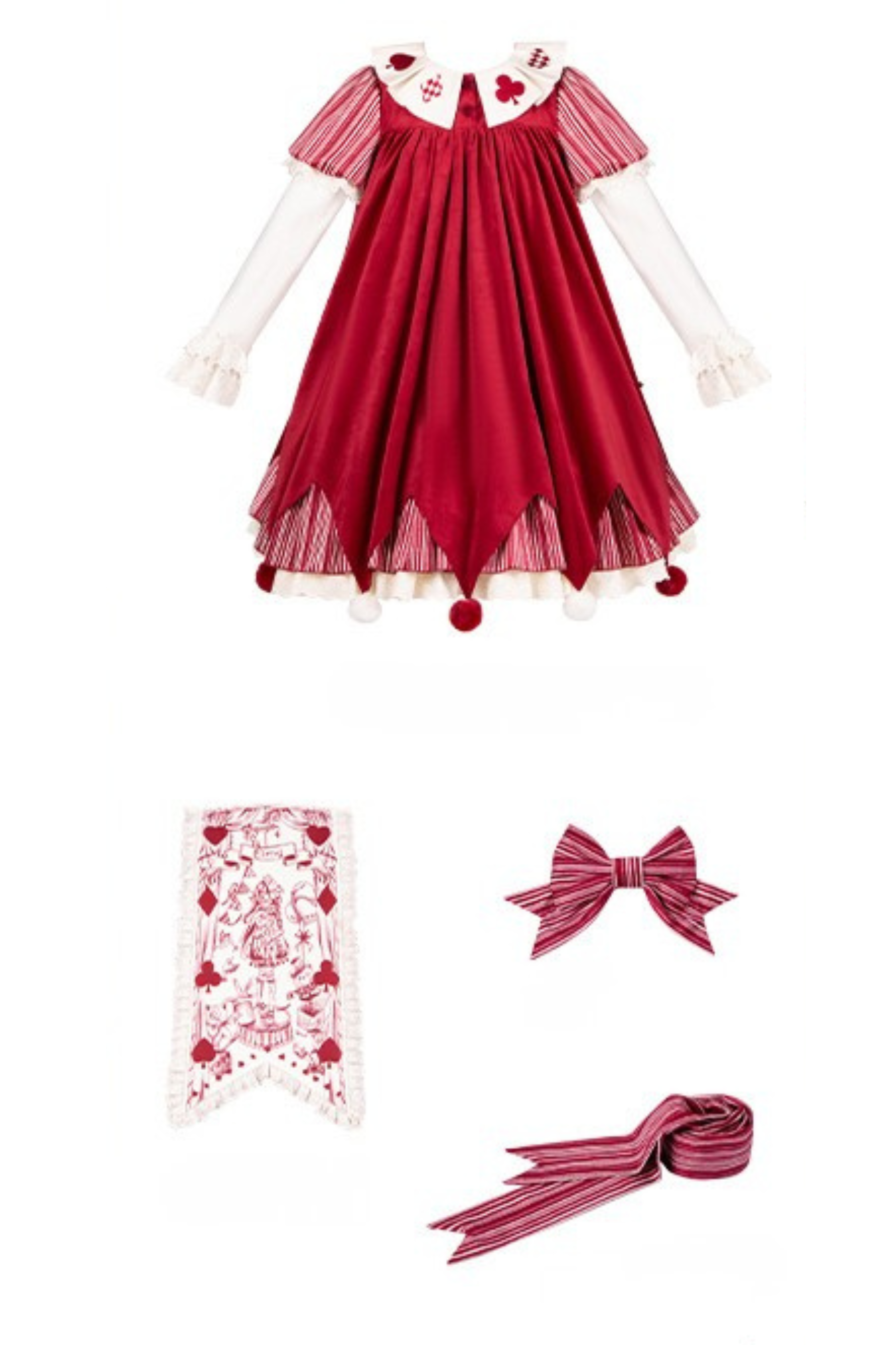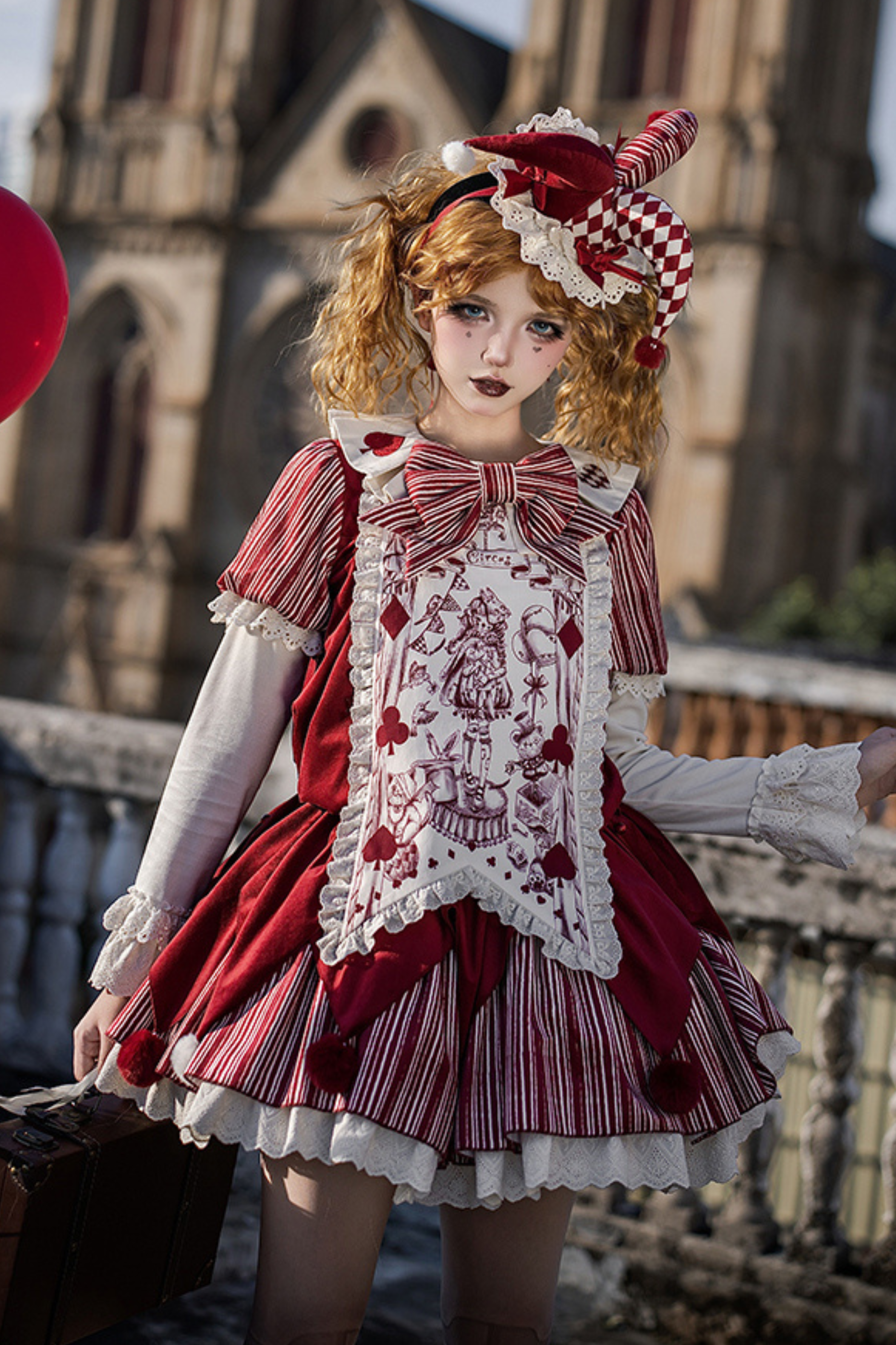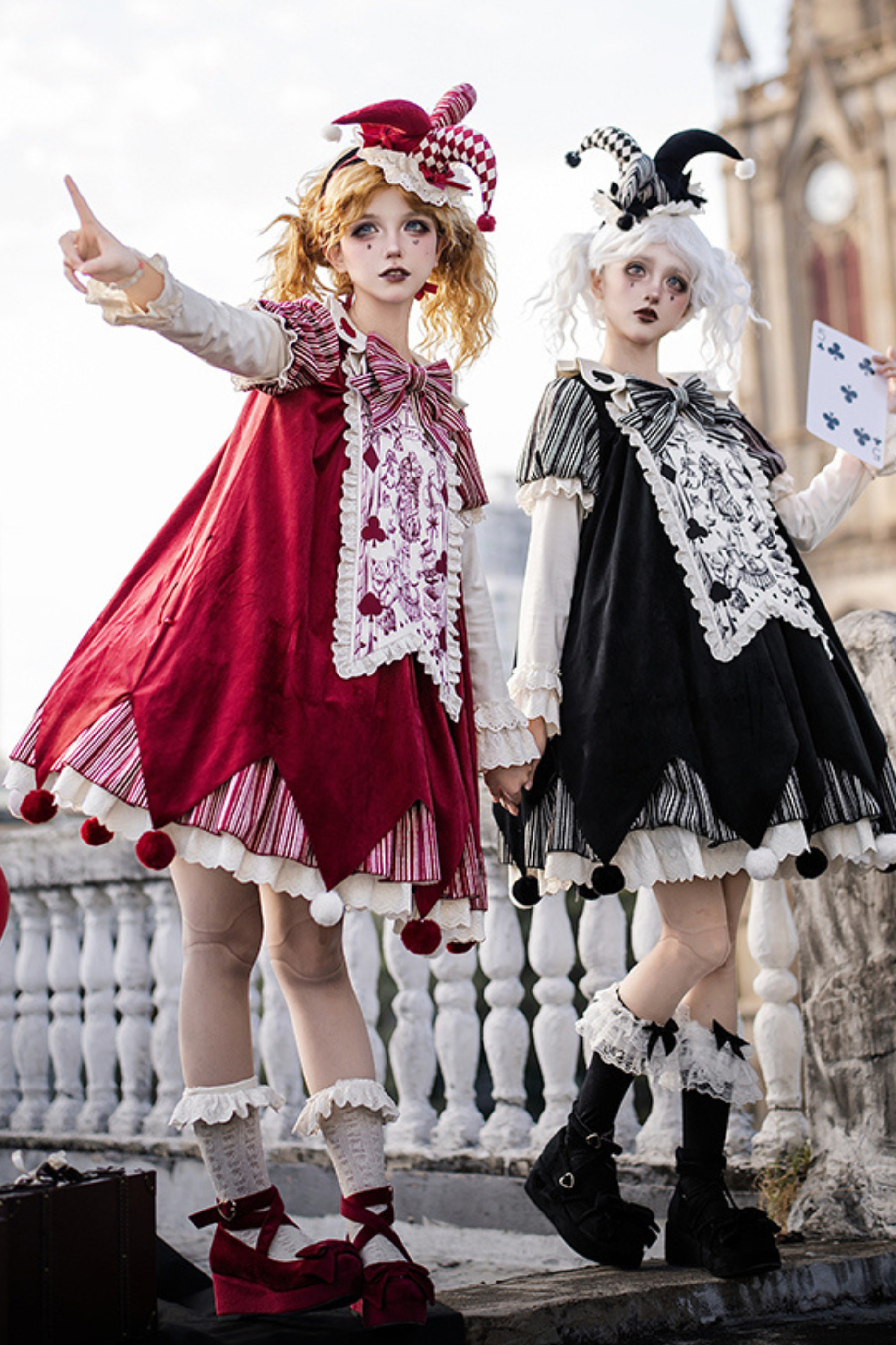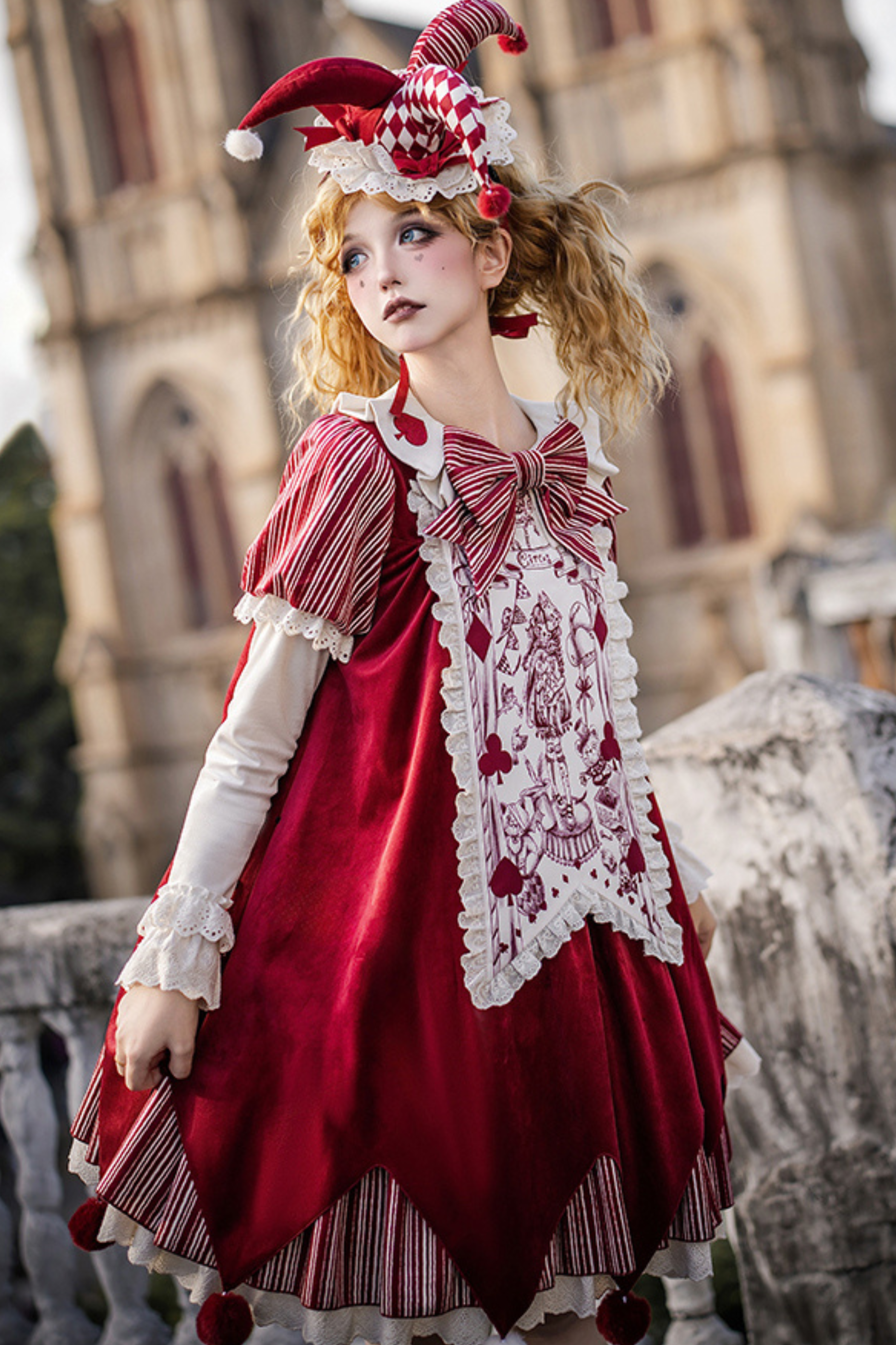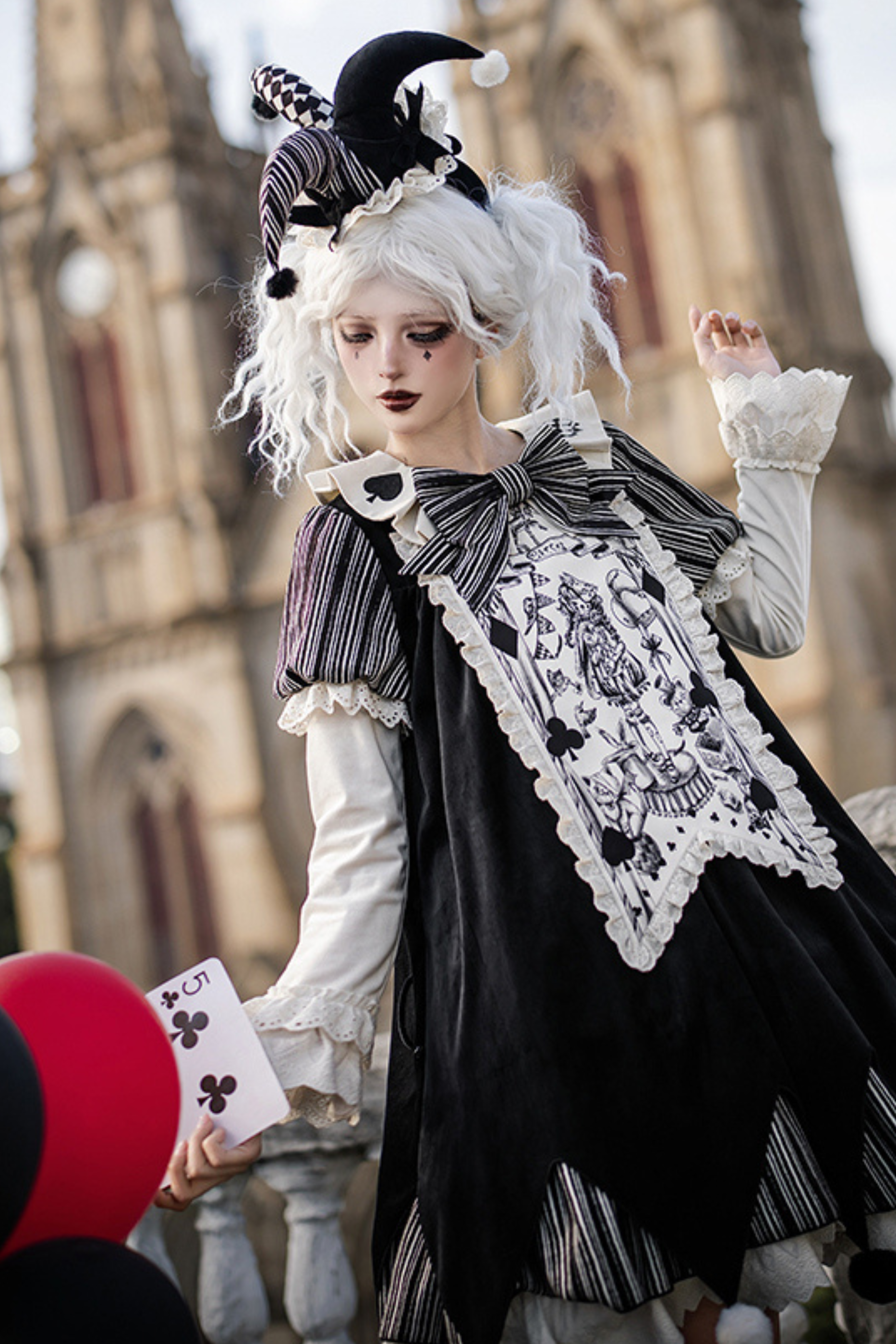 ドールサーカスピエロロリータドレス+カチューシャ+ベルト+リボン+カチューシャ+バッフル