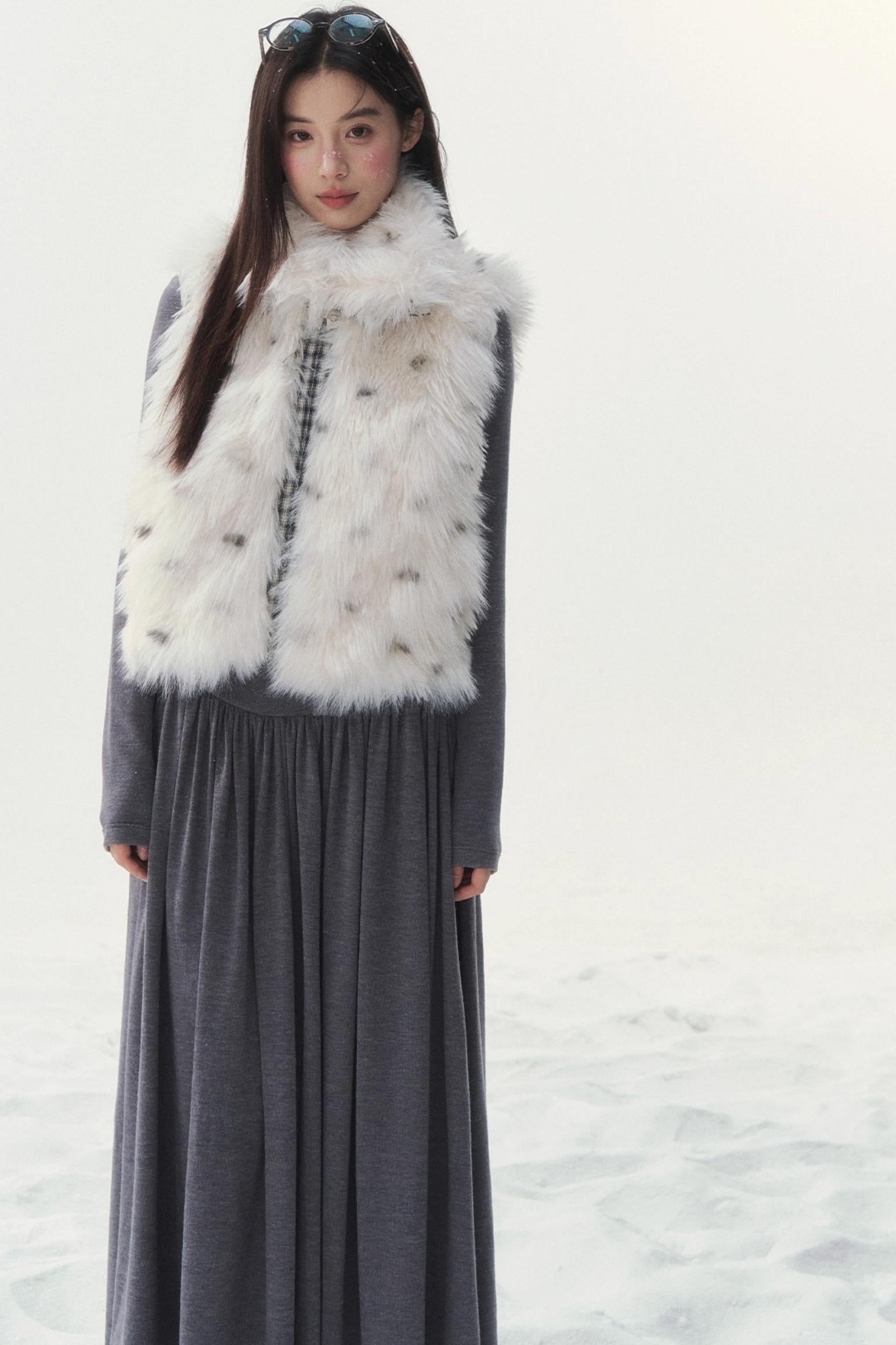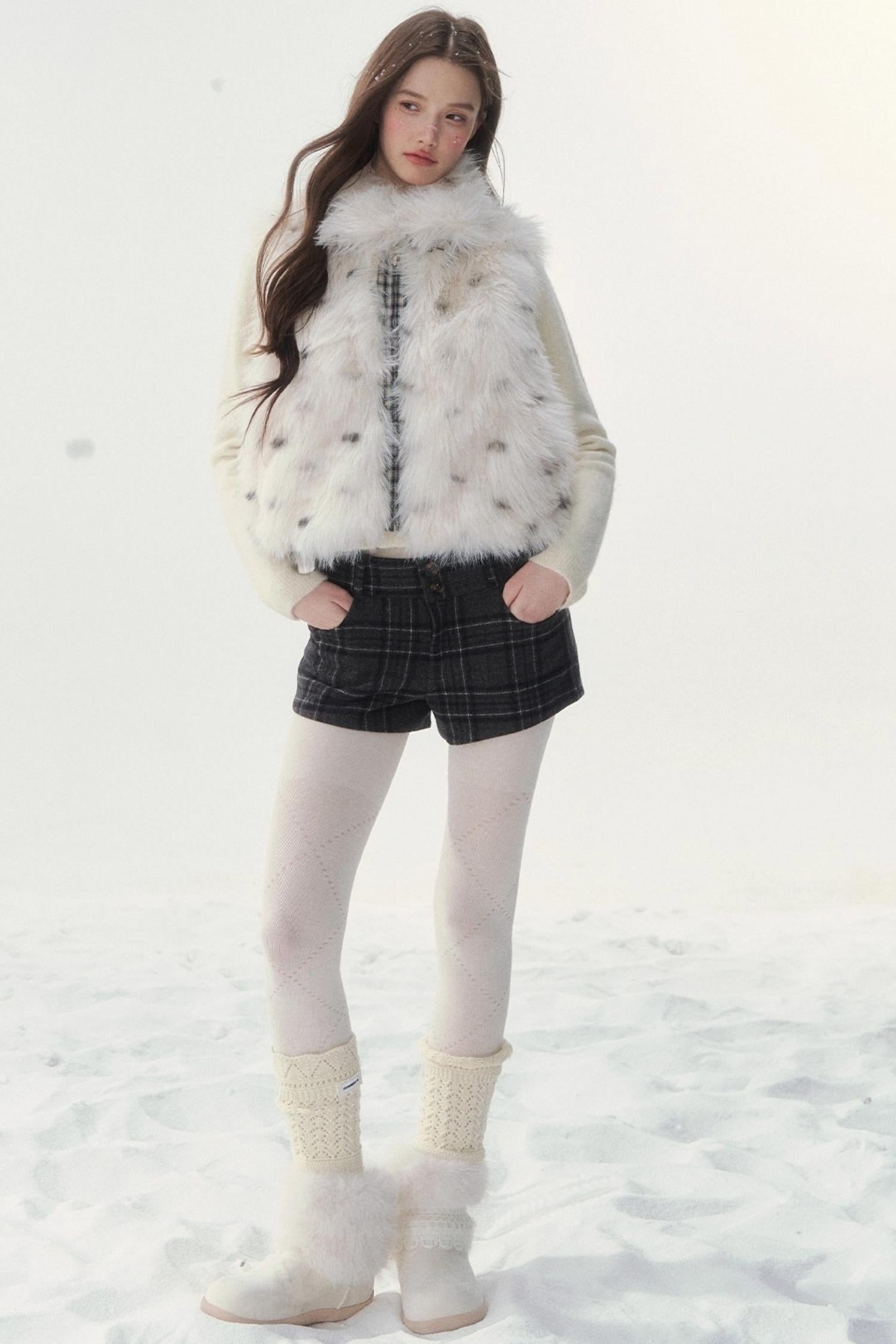 チェックドットファーリバーシブルベスト