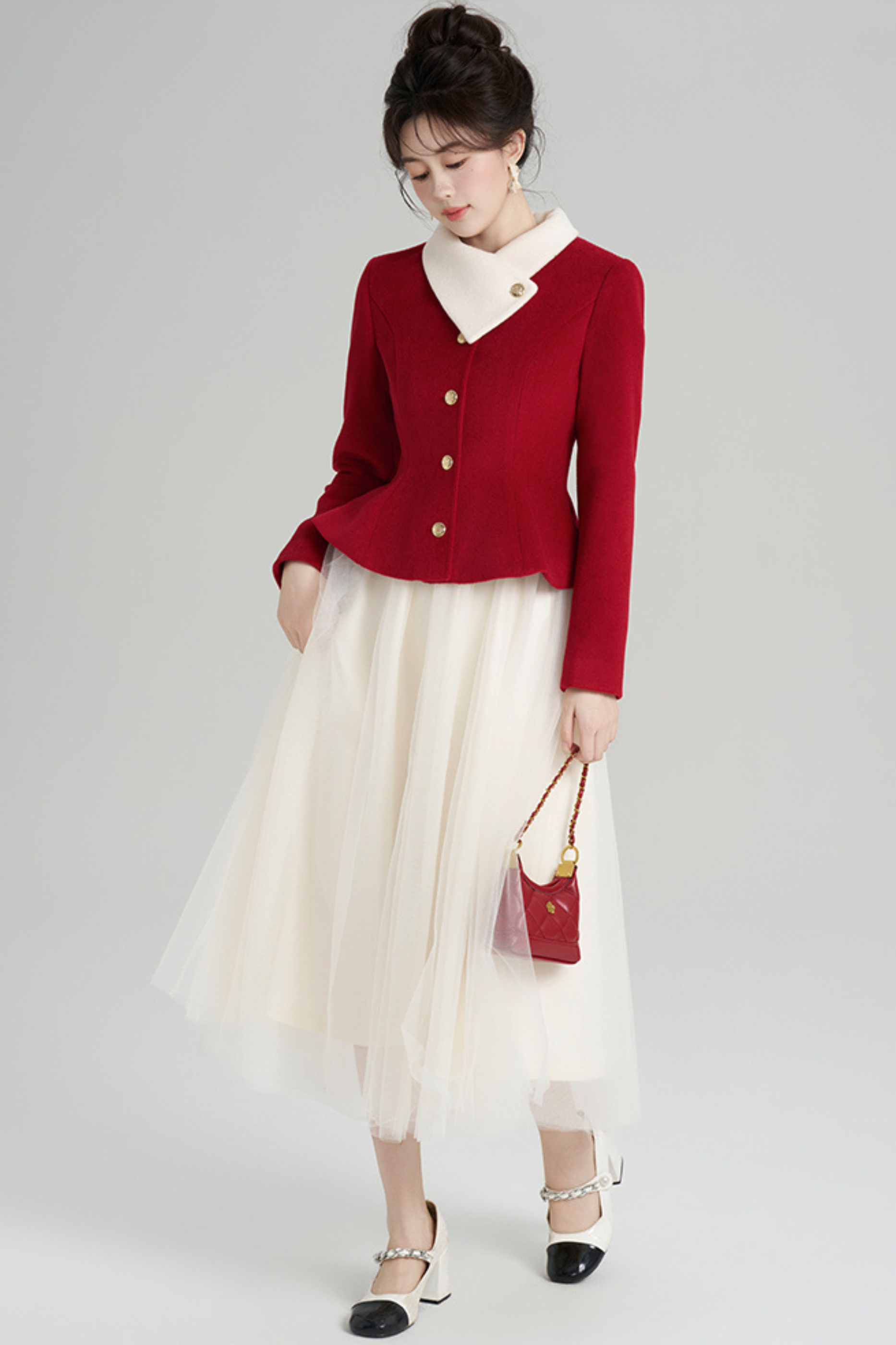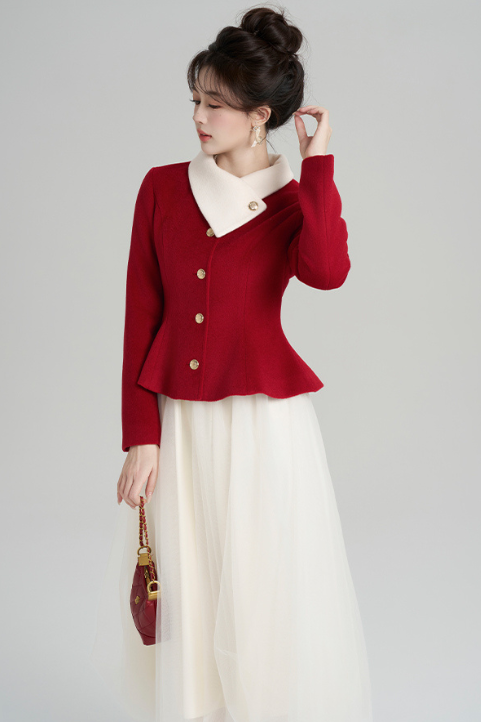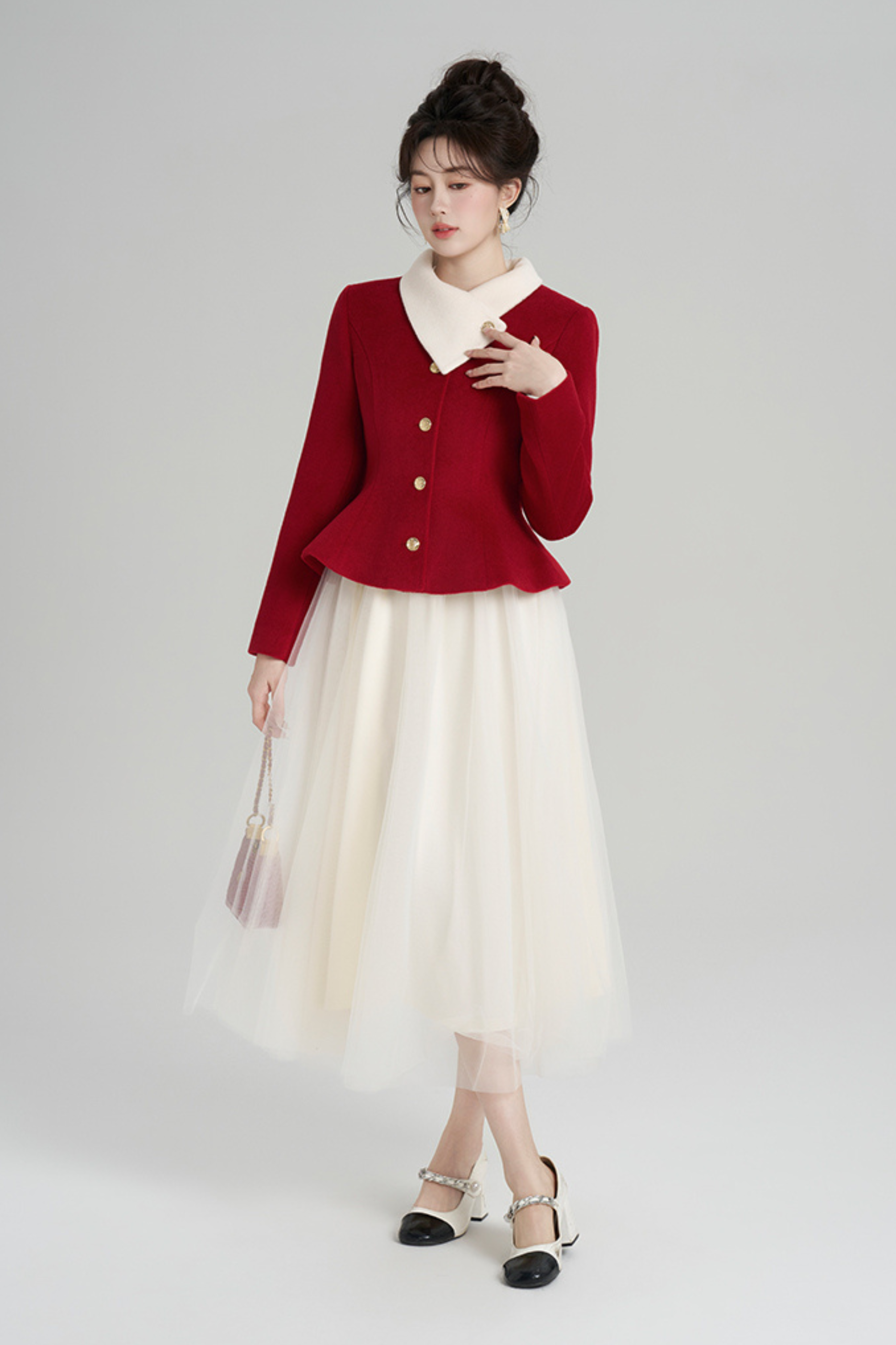 ❤レッドウールンウエストシンチングコート+ロングドレス❤