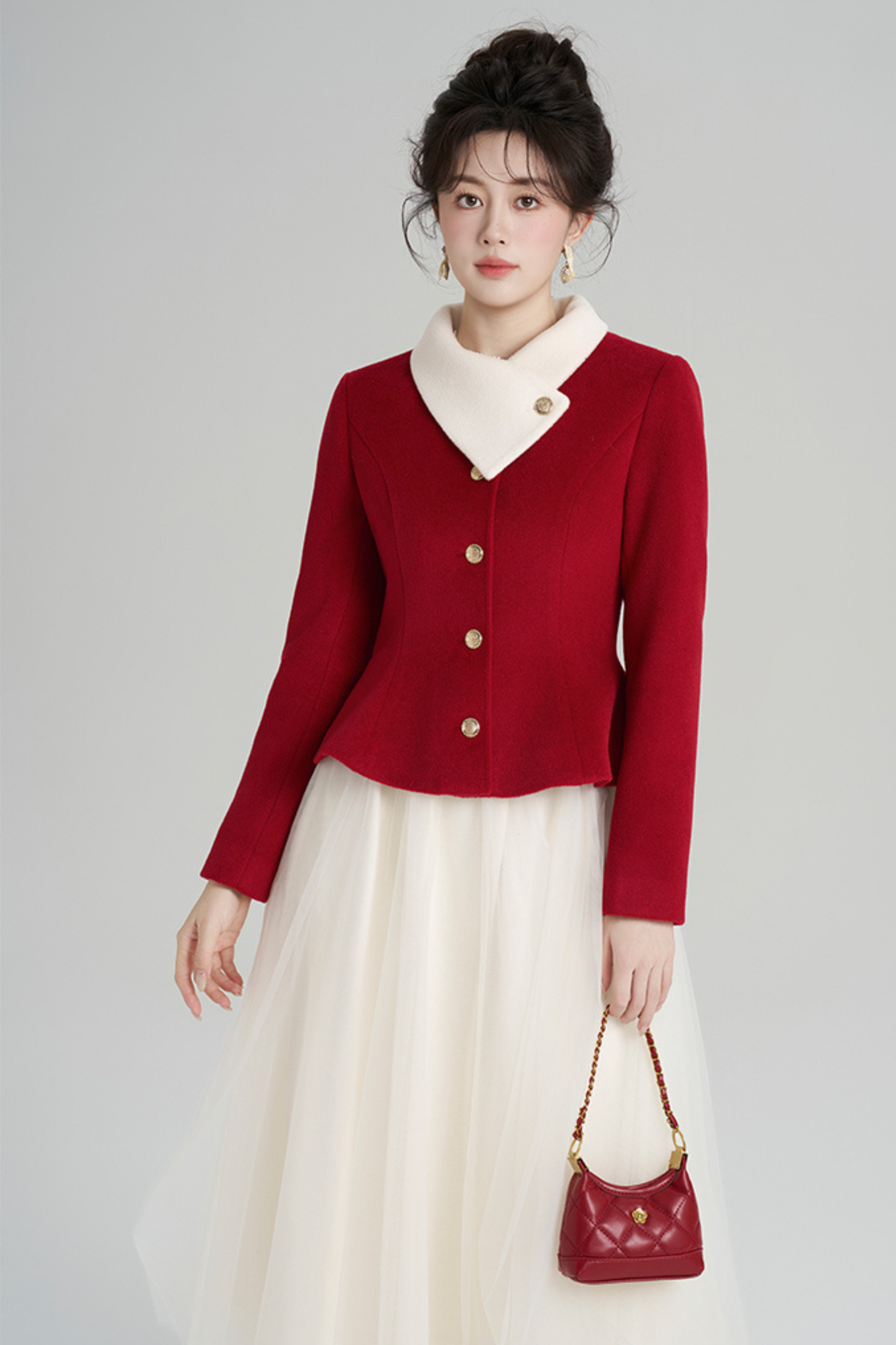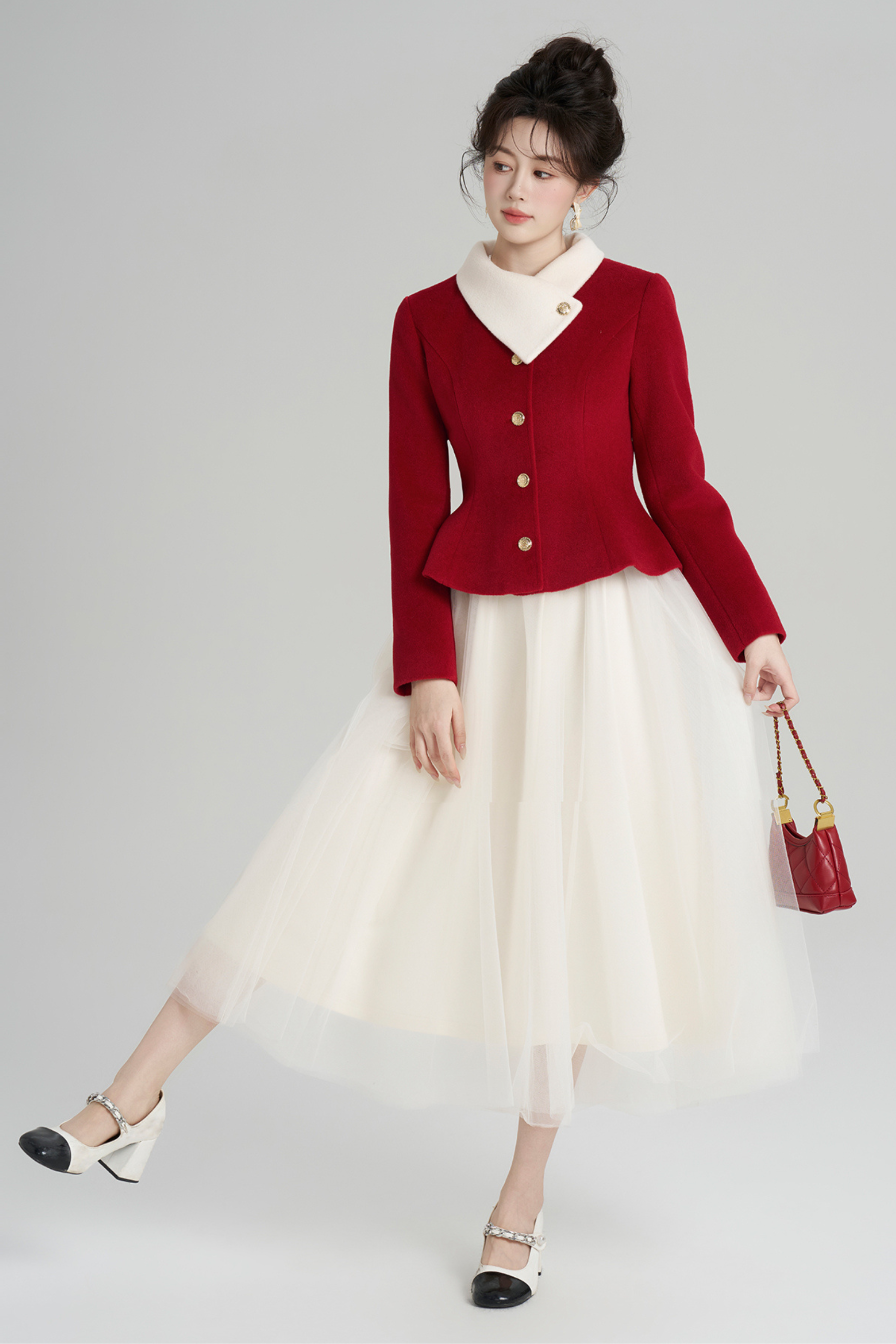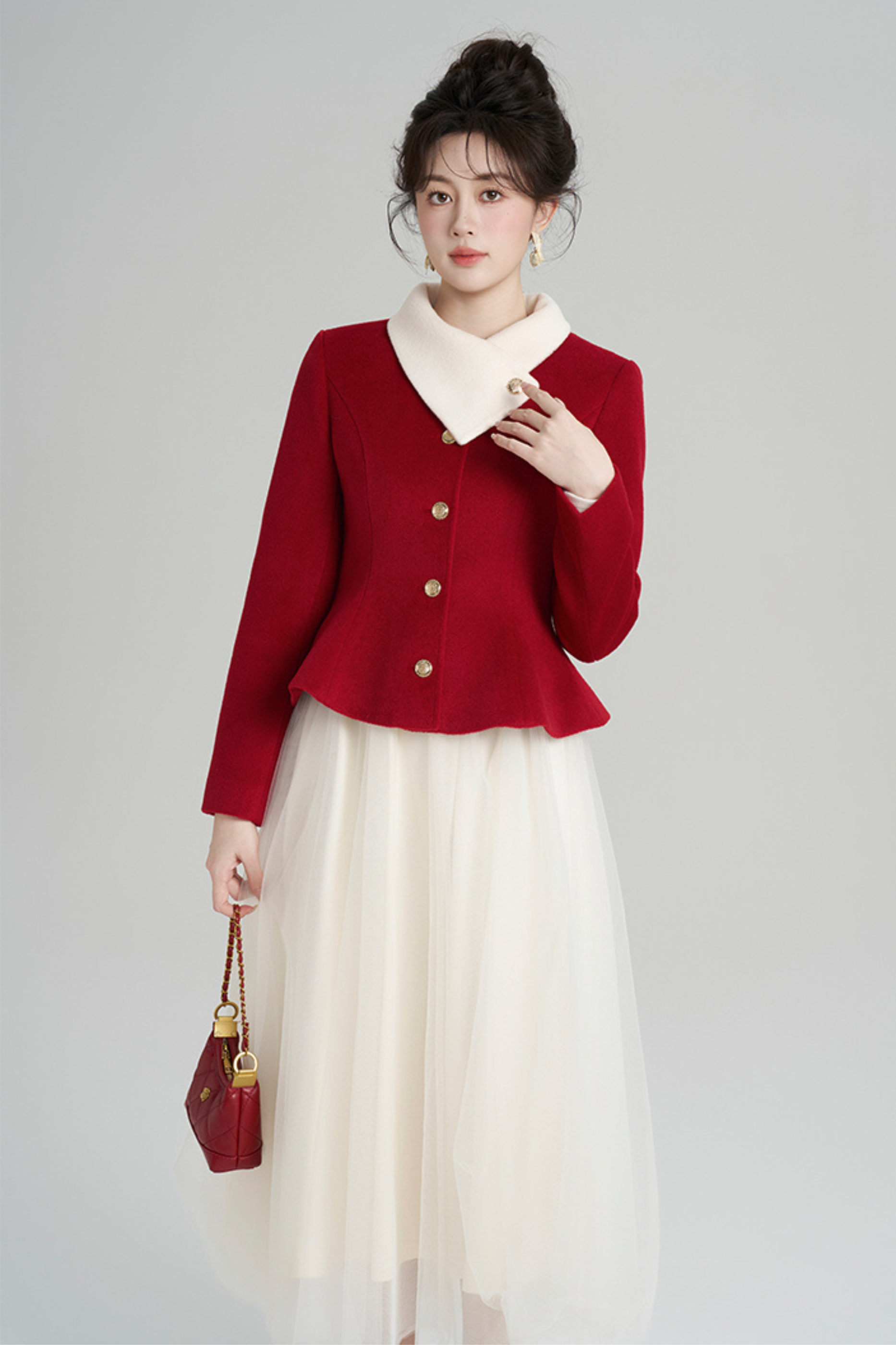 ❤レッドウールンウエストシンチングコート+ロングドレス❤