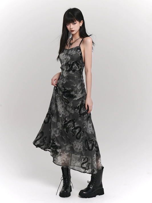 Blood Supply Original ◆ Fierce Dragon Groan 复古朋克系带龙纹刺绣改良旗袍开衩连衣裙