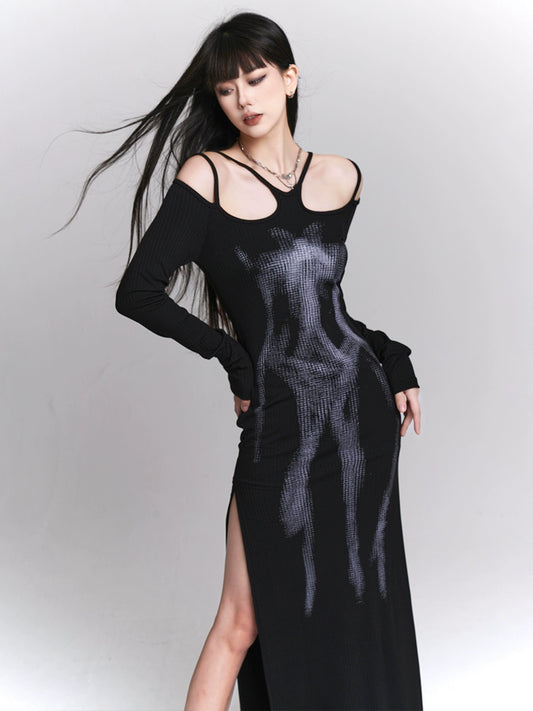 幽灵女孩黑色滑裙 2024 早春新款女性春秋音乐节服饰艺术裙装