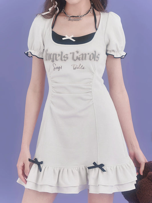 SagiDolls Teenage Fighting Spirit # Angel Song # Rice 白色系领吊带短袖连衣裙修身版型纯粹的夏日渴望