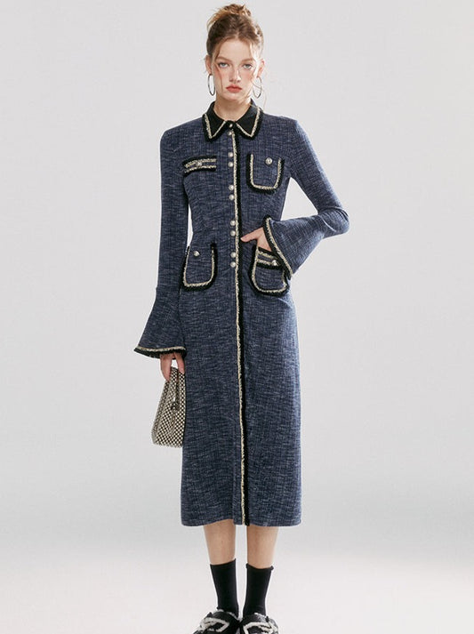 BOHOL BLING 薄荷不清凉 轻奢名媛小香风针织连衣裙女装秋冬小众长裙