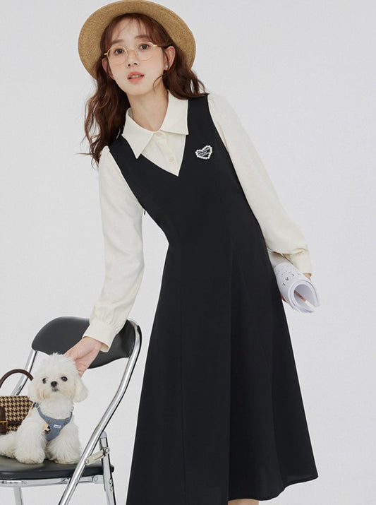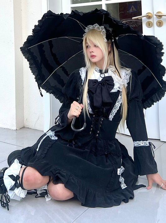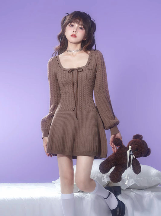 法式复古天鹅绒甜美蝴蝶结方领连衣裙