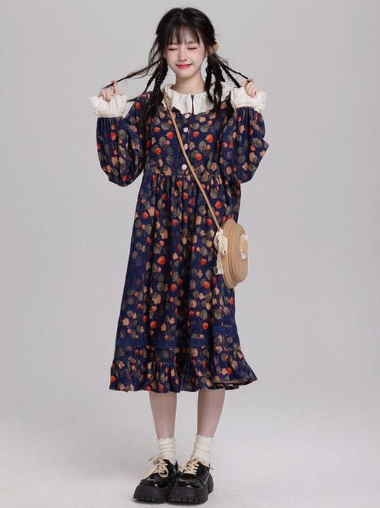 血色法式扁豆田园蕾丝腰带袖连衣裙