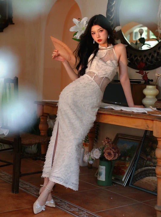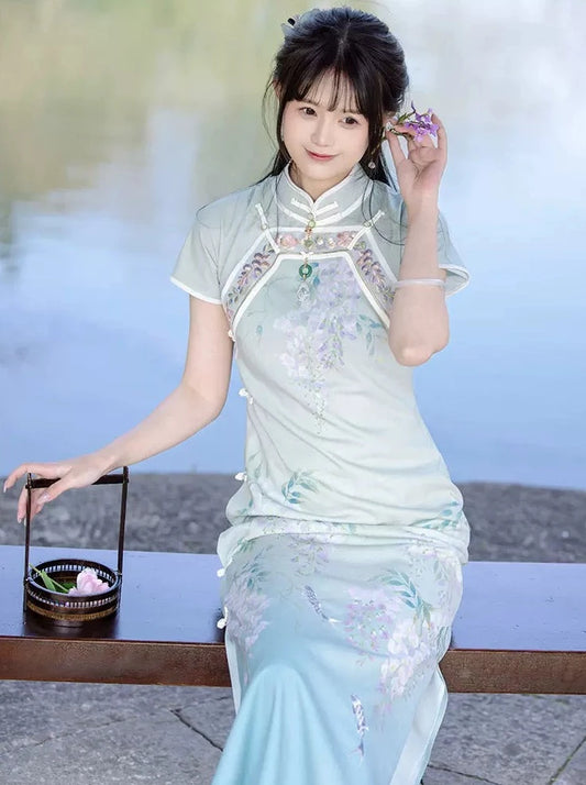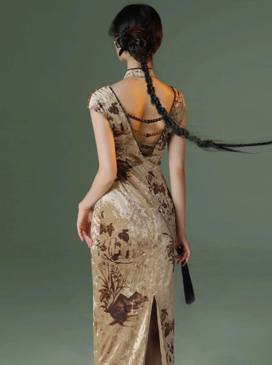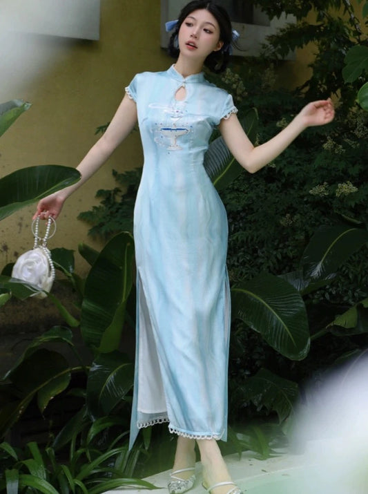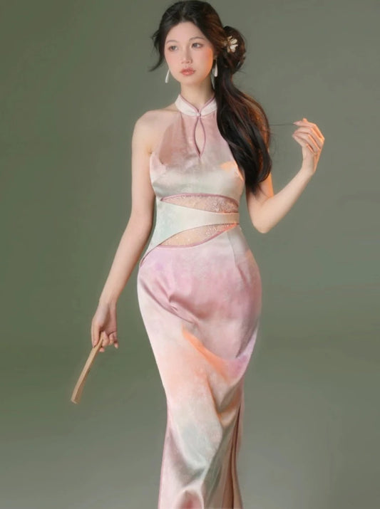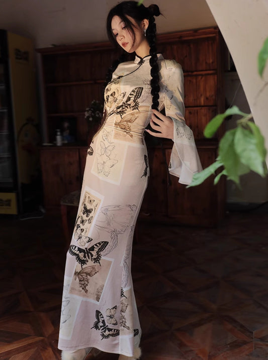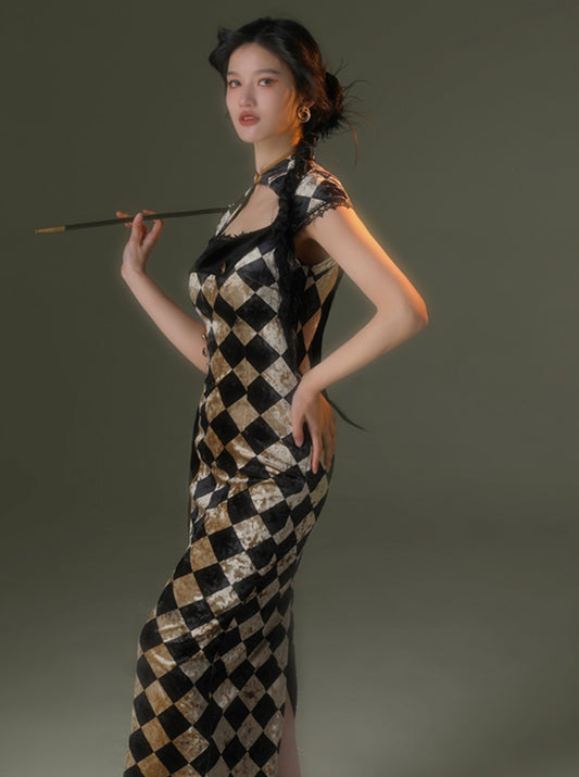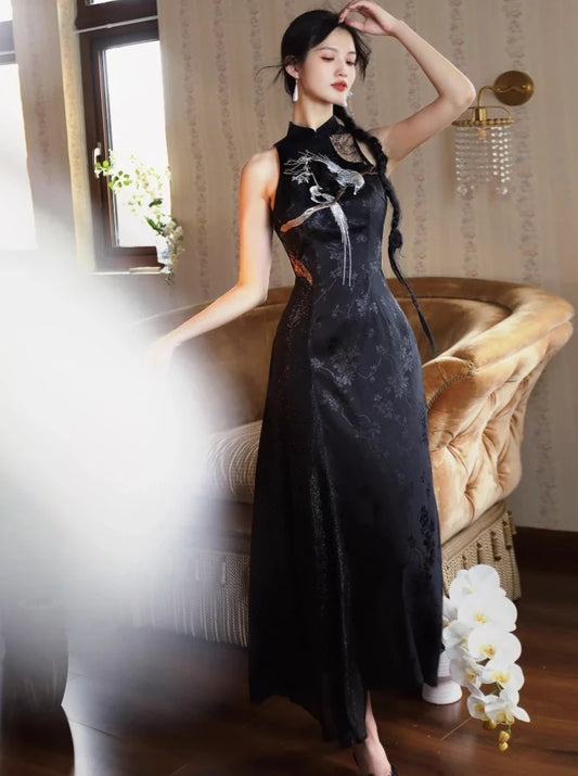 • 四斤自制鬼马精灵原创高弹力网纱少女蝴蝶结紫黑色修身长裙