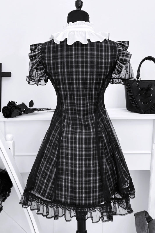 ダークサブカルチャーレースチェックドレス