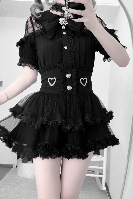 フラワースイートメッシュコルセットロリータセットアップ