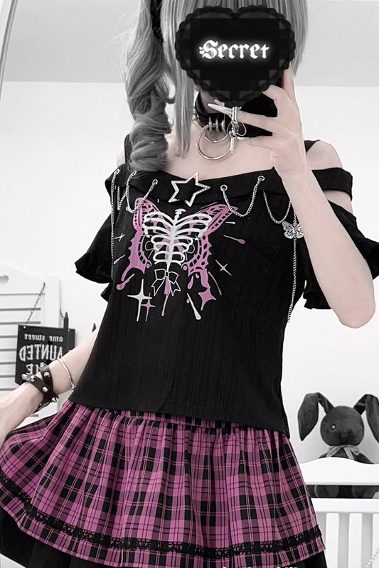サブカルチャースウィートクールトップス+チェックスカート