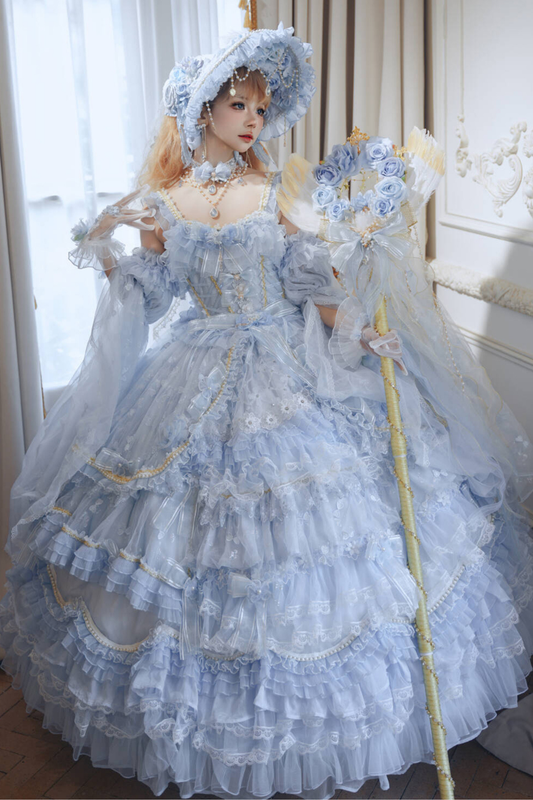 ゴージャスアイスブループリンセスミディアムロリータドレス