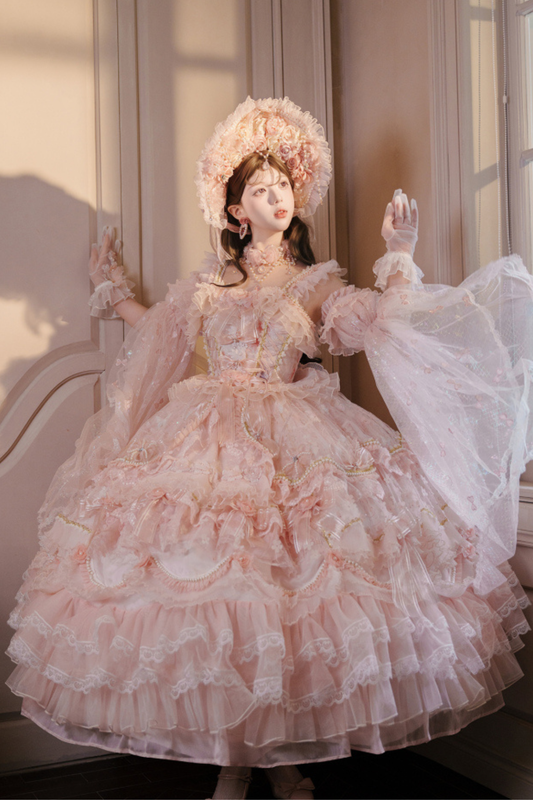 スイートフラワーゴージャスティーパーティーロングロリータドレス