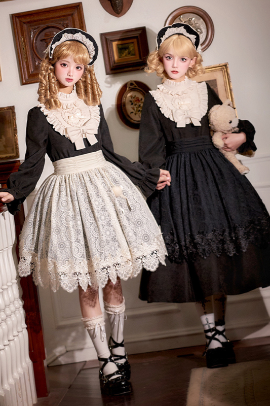 【予約商品】ダークドールロリータドレス+エプロン+リボン+ヘアバンド