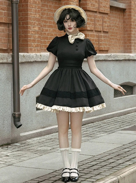 温莎旧约 OP] withpuji 原创设计 cla 黑色短袖夏装送蝴蝶结洛丽塔