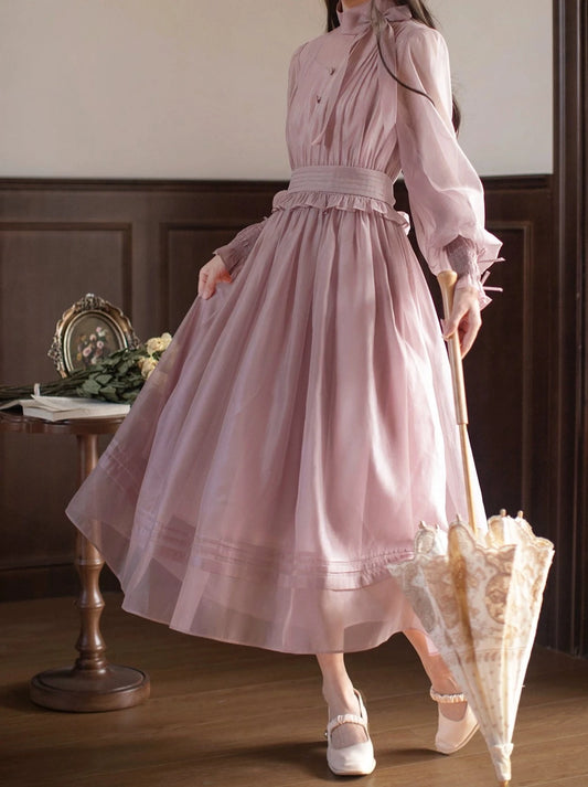 核桃 JK [Cordley] 原创复古优雅连衣裙 粉紫色春夏温婉淑女轻盈长裙