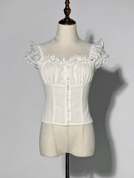 洛丽塔原创设计短袖衬衫可爱娃娃领蕾丝免烫洛丽塔连衣裙上衣