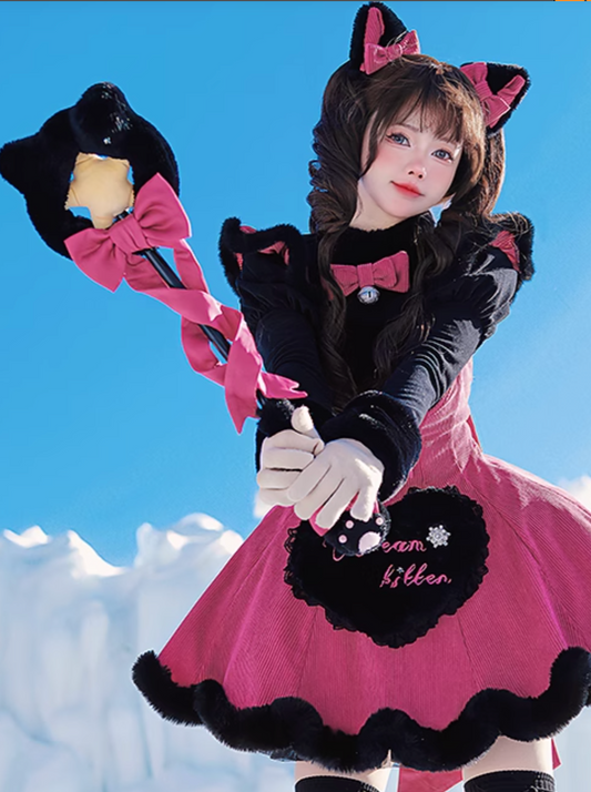 Charcoal group.Prayer meow 魔法少女轻柔可爱猫咪萝莉毛绒连衣裙套装