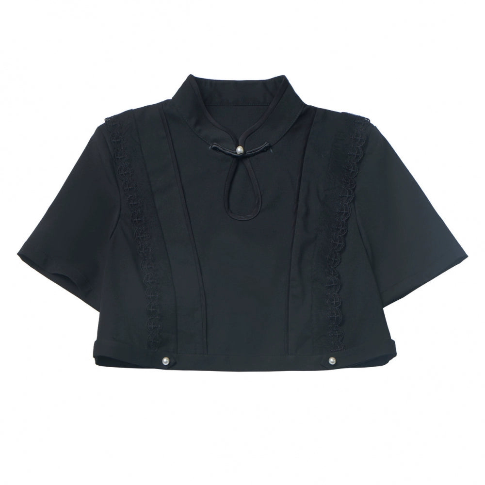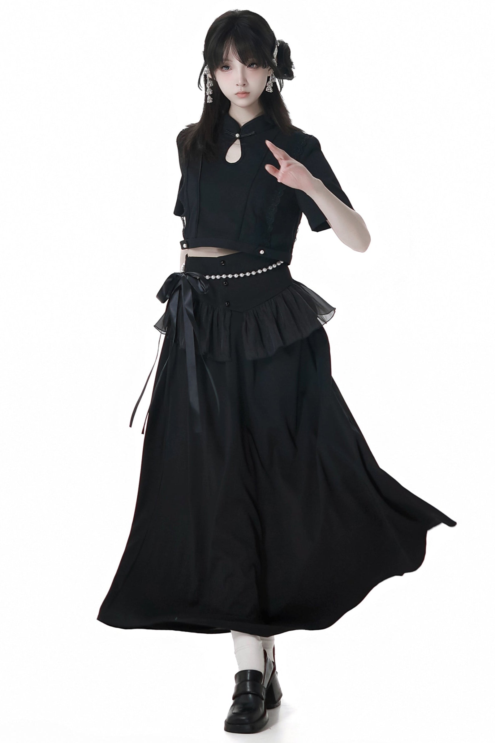 暗黑系无袖连衣裙+短款衬衫+喇叭裙