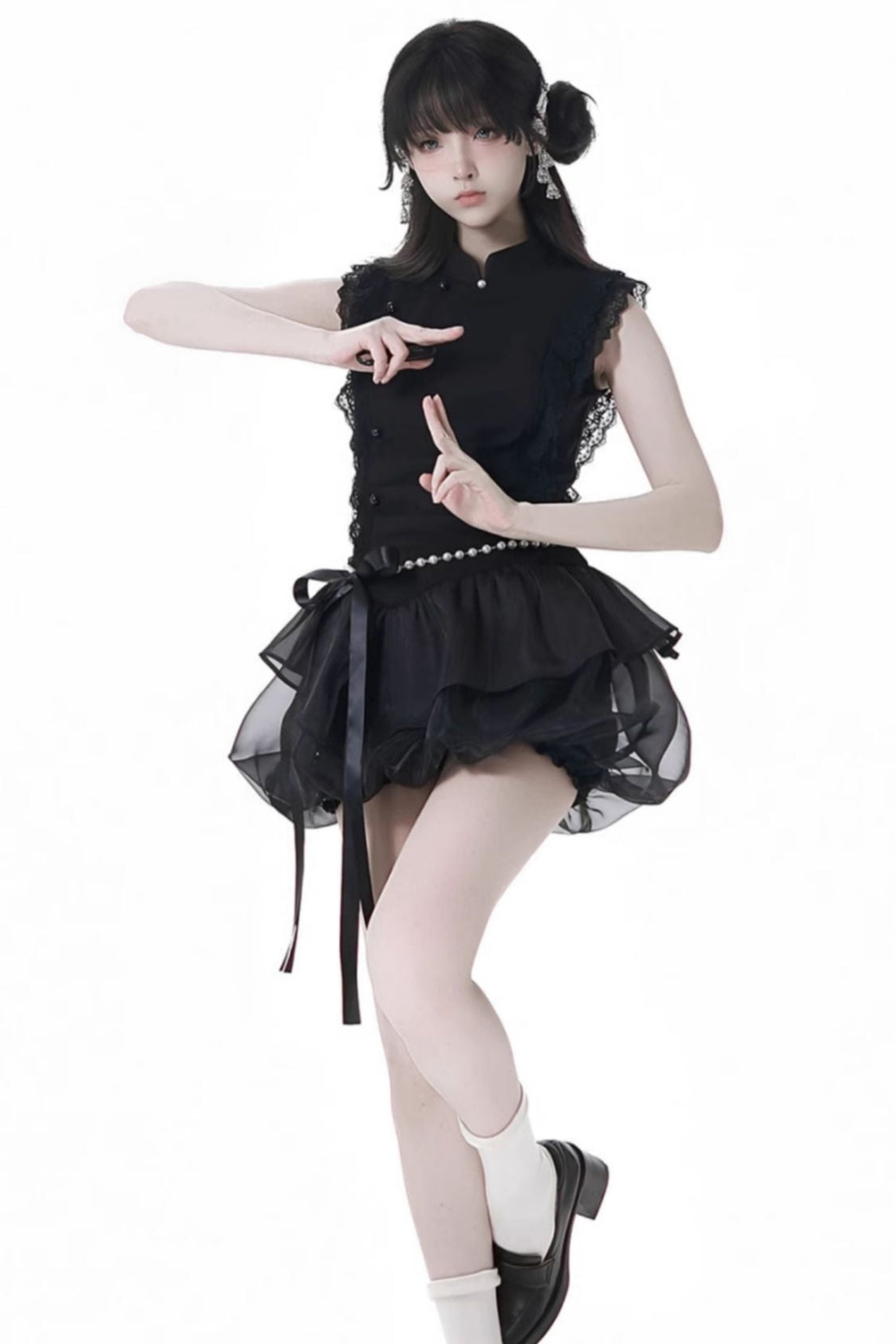 ❤暗黑系无袖连衣裙+短款衬衫+喇叭裙❤