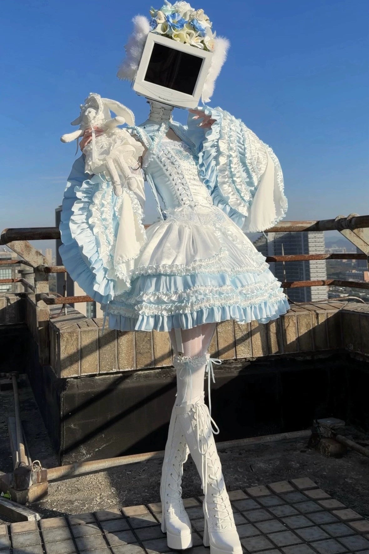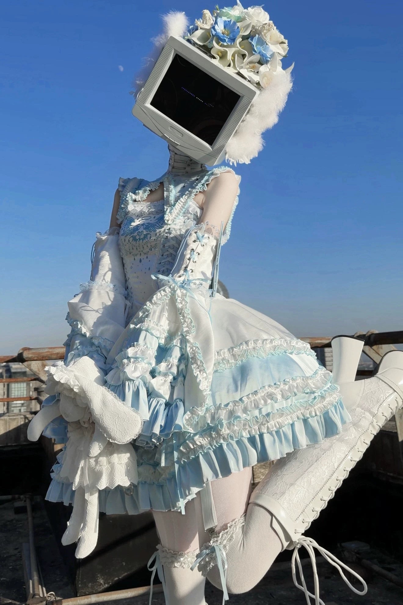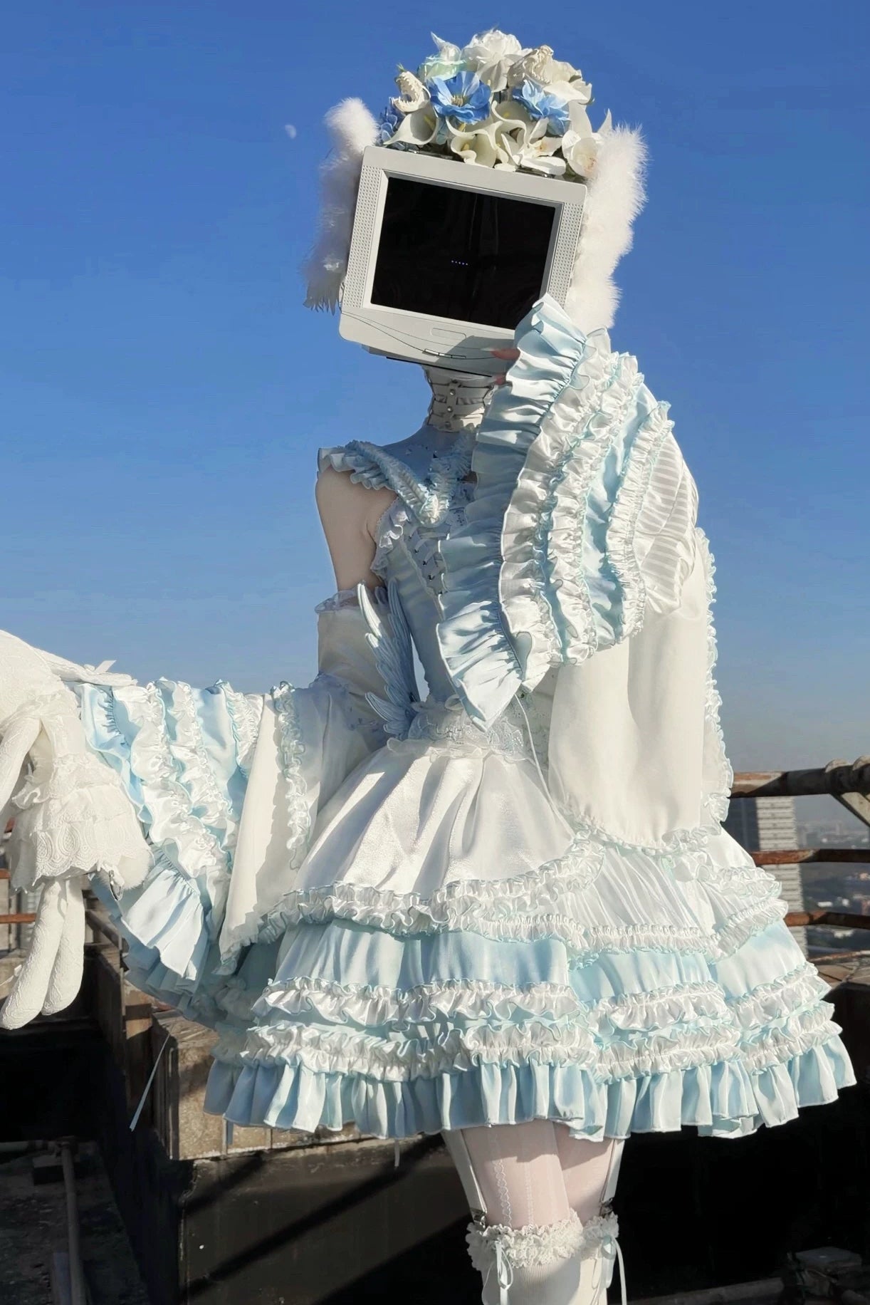 水色天使系列上衣+裙子+衬衫领+袖子+帽子+夹子