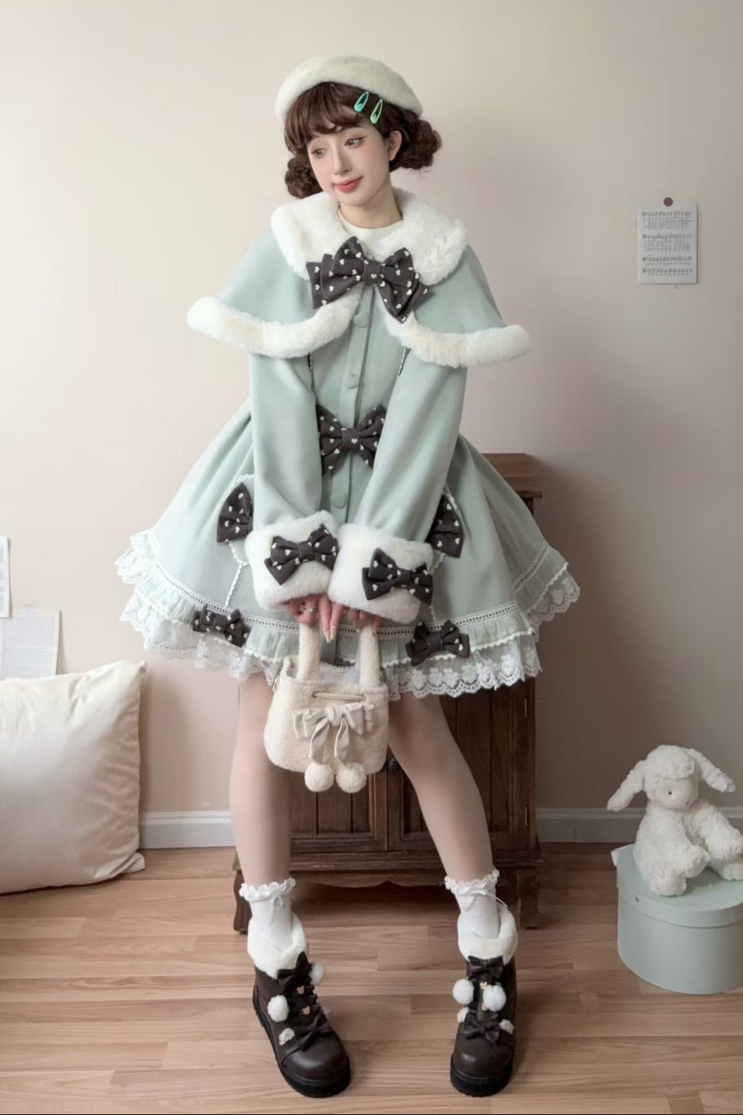 【予約商品】スイートアンドキュートファーケープリボンコート