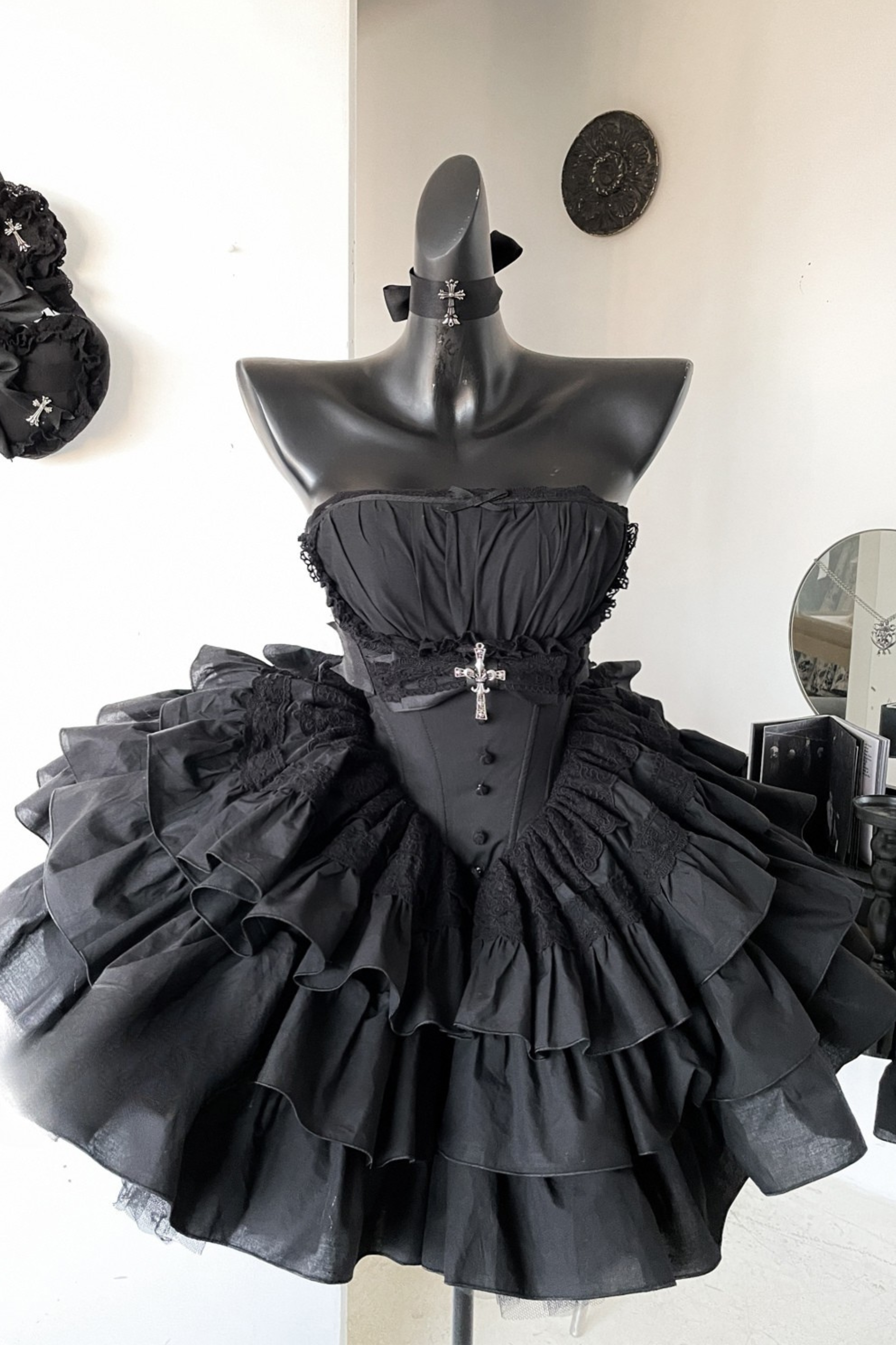 ❤シフォンゴシックバッスルフリルドレスセット❤