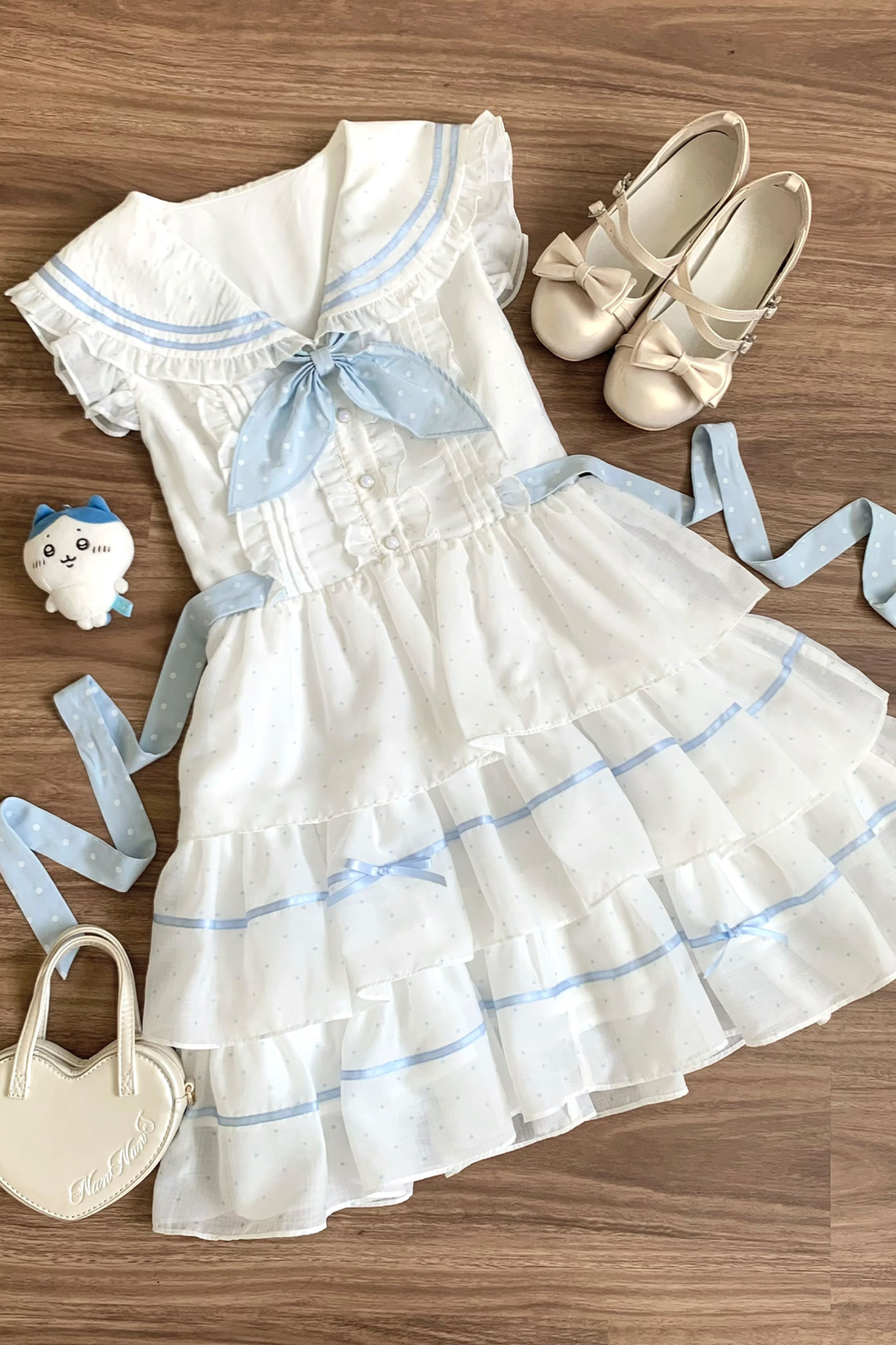 ❤ドットノースリーブリボンセーラーワンピース❤
