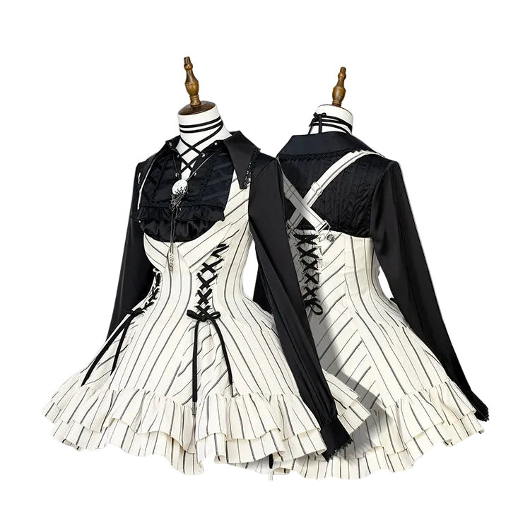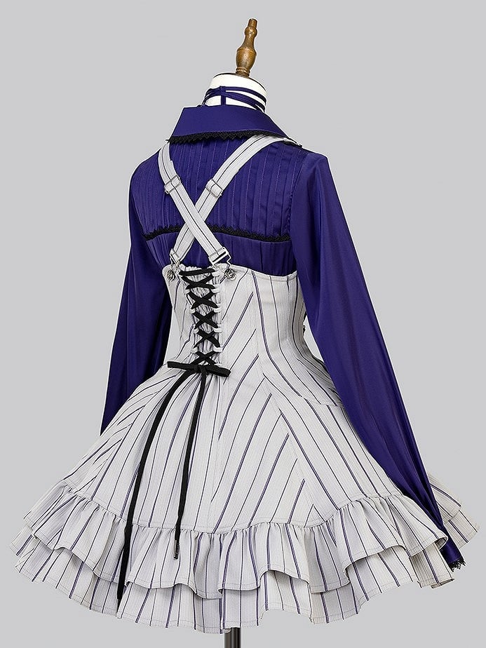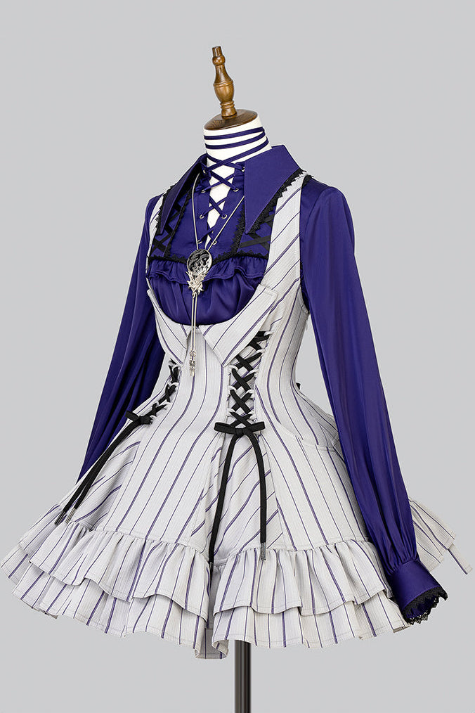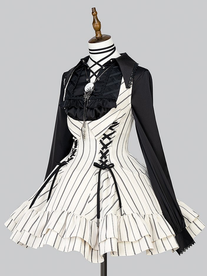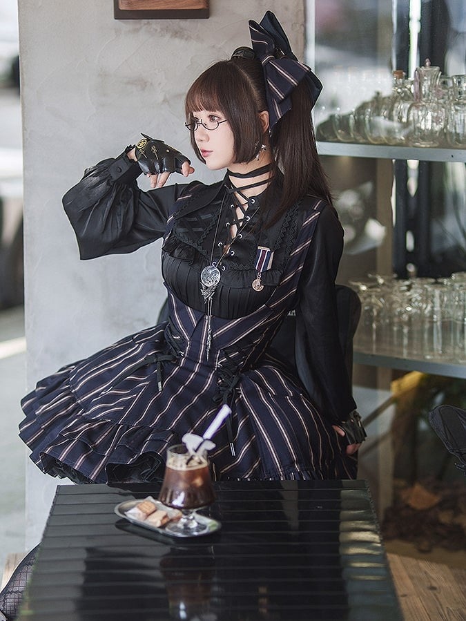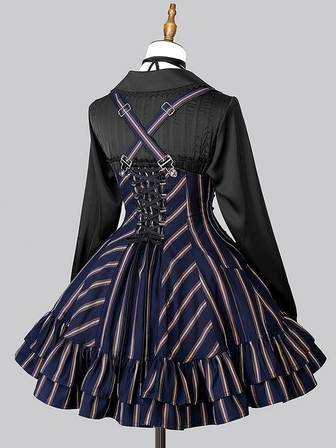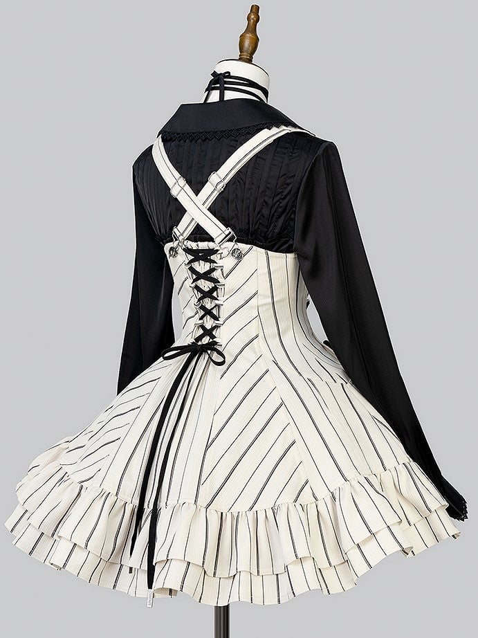 ❤︎【12月29日予約締切】ゴシックロリータストライプバッククロスフリルサスドレス❤︎ ⚠️人気商品のためお届けに5-6ヶ月ほどかかってしまう場合がございます