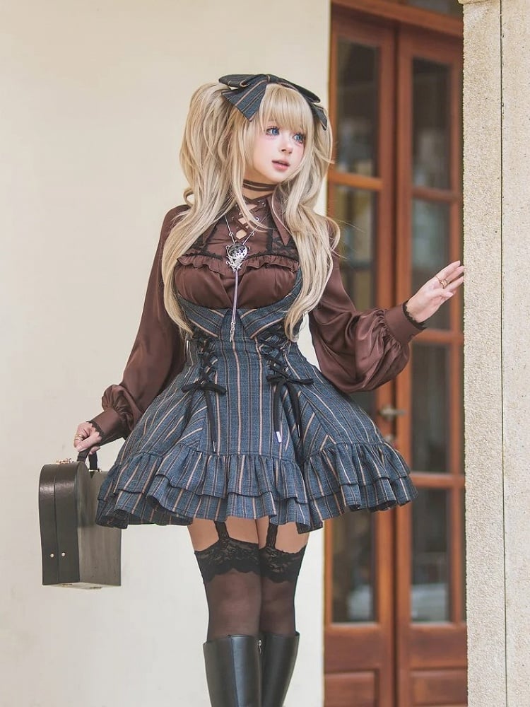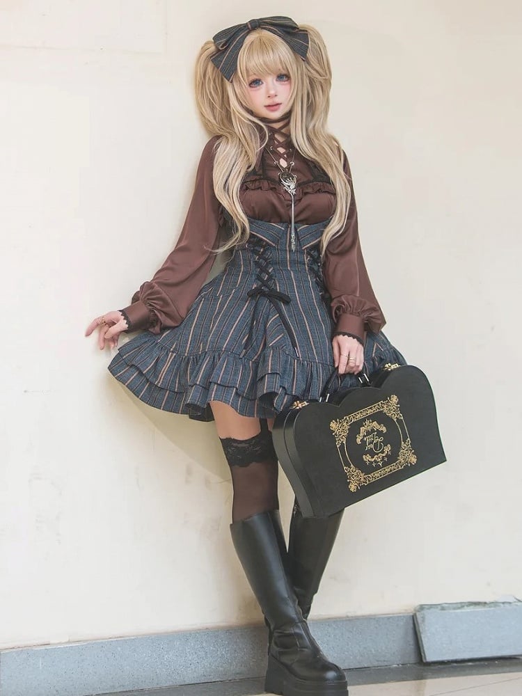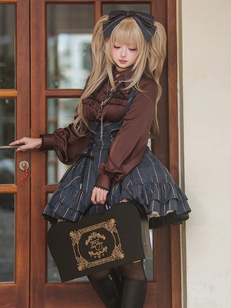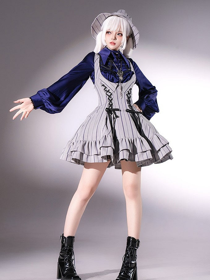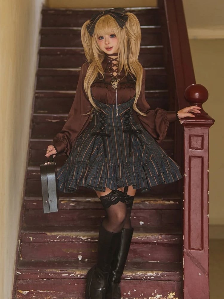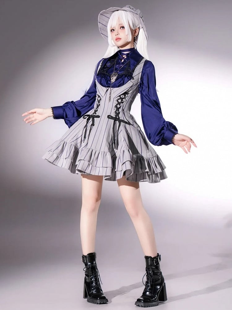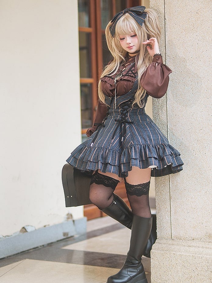 ❤︎【12月29日予約締切】ゴシックロリータストライプバッククロスフリルサスドレス❤︎ ⚠️人気商品のためお届けに5-6ヶ月ほどかかってしまう場合がございます