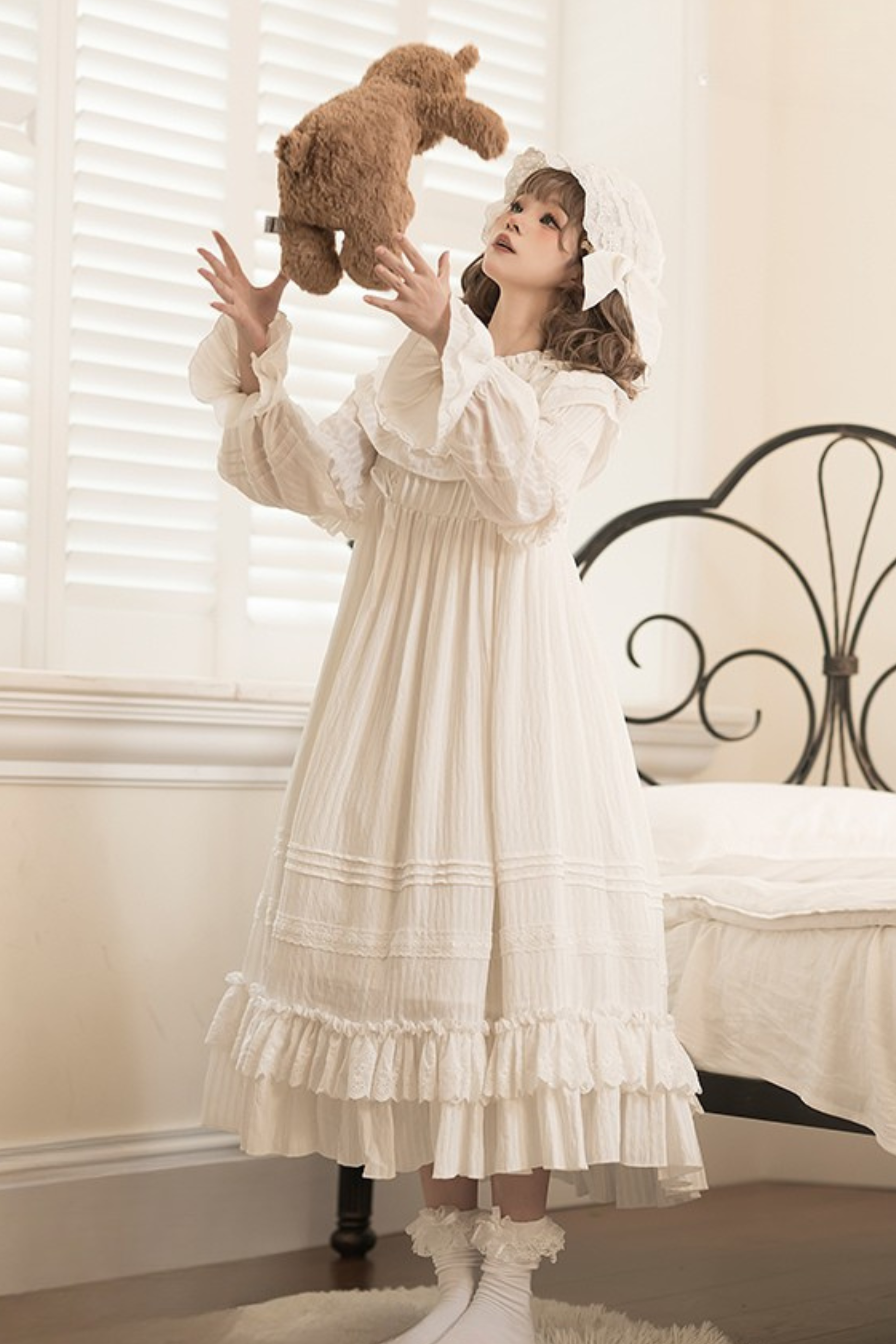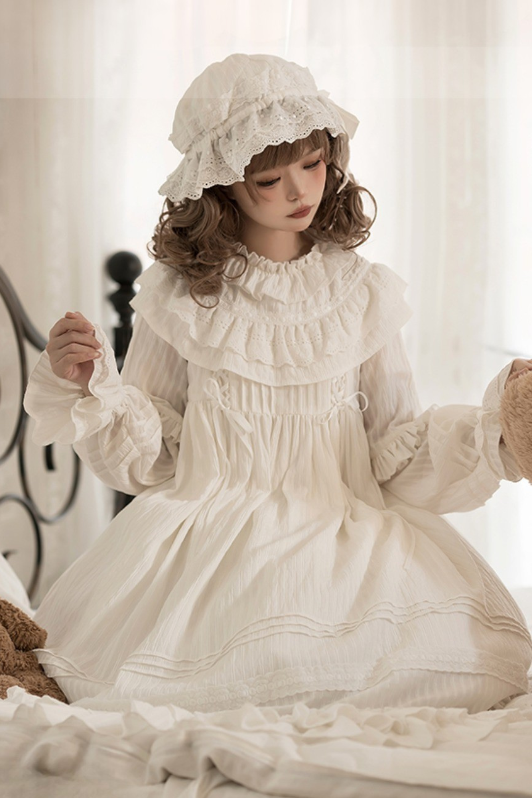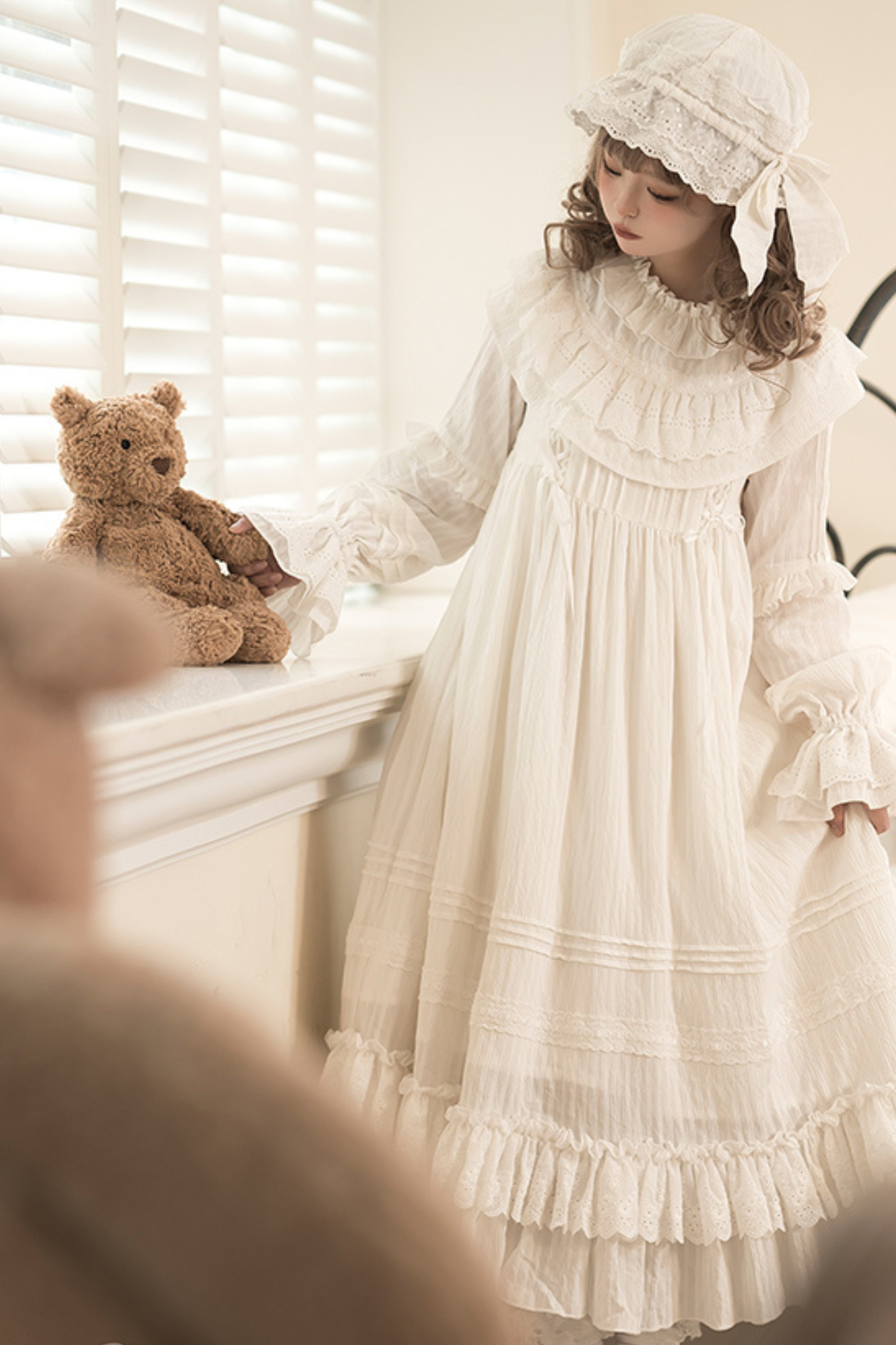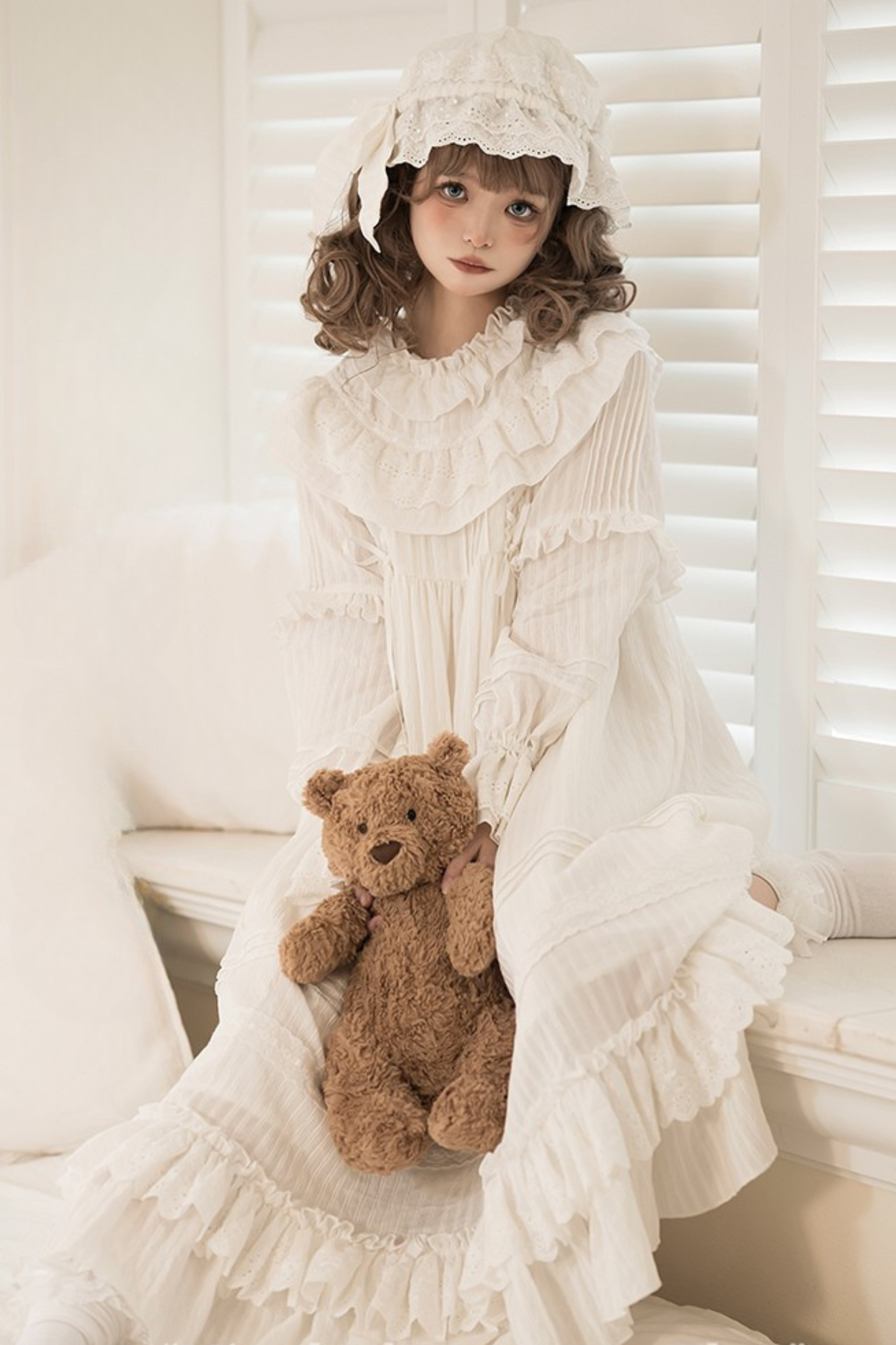 クラシカルピュアホワイトドールドレス+ベビーハット
