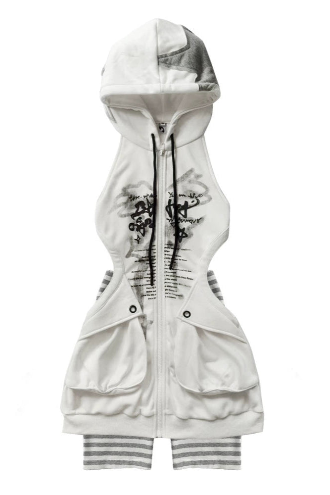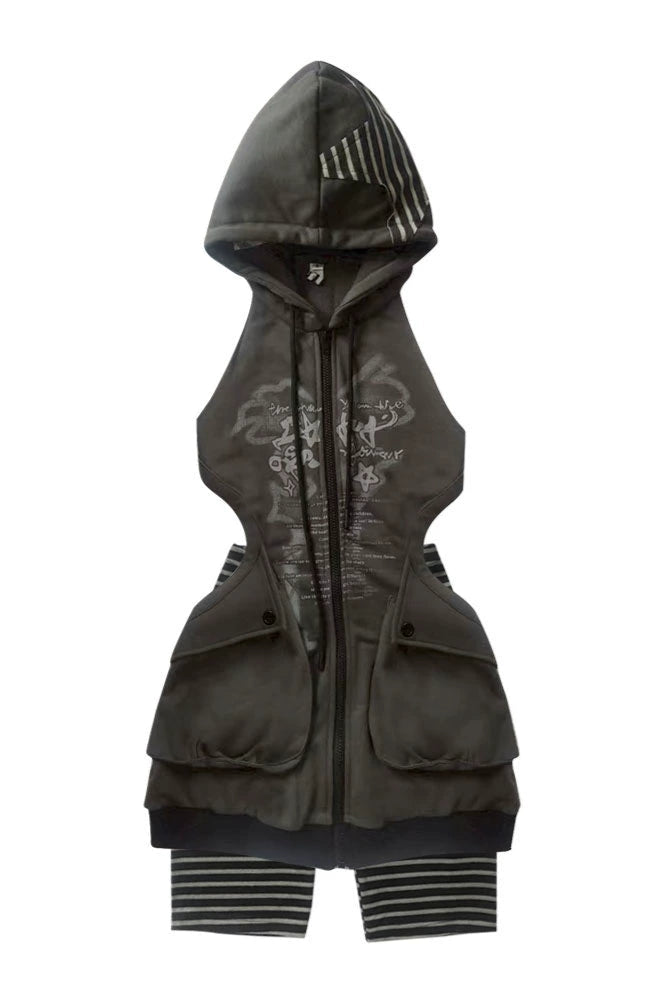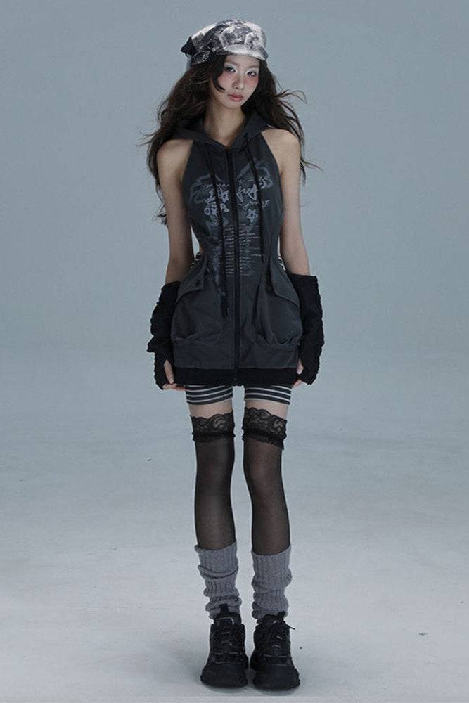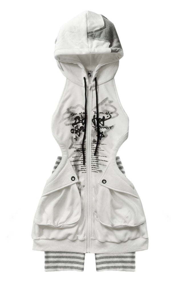 ロングパーカーカットアウトY2Kスウェットワンピース